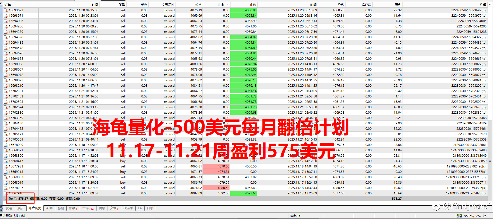 海龟量化上周盈利情况,500美元账户每月翻倍计划已经实现