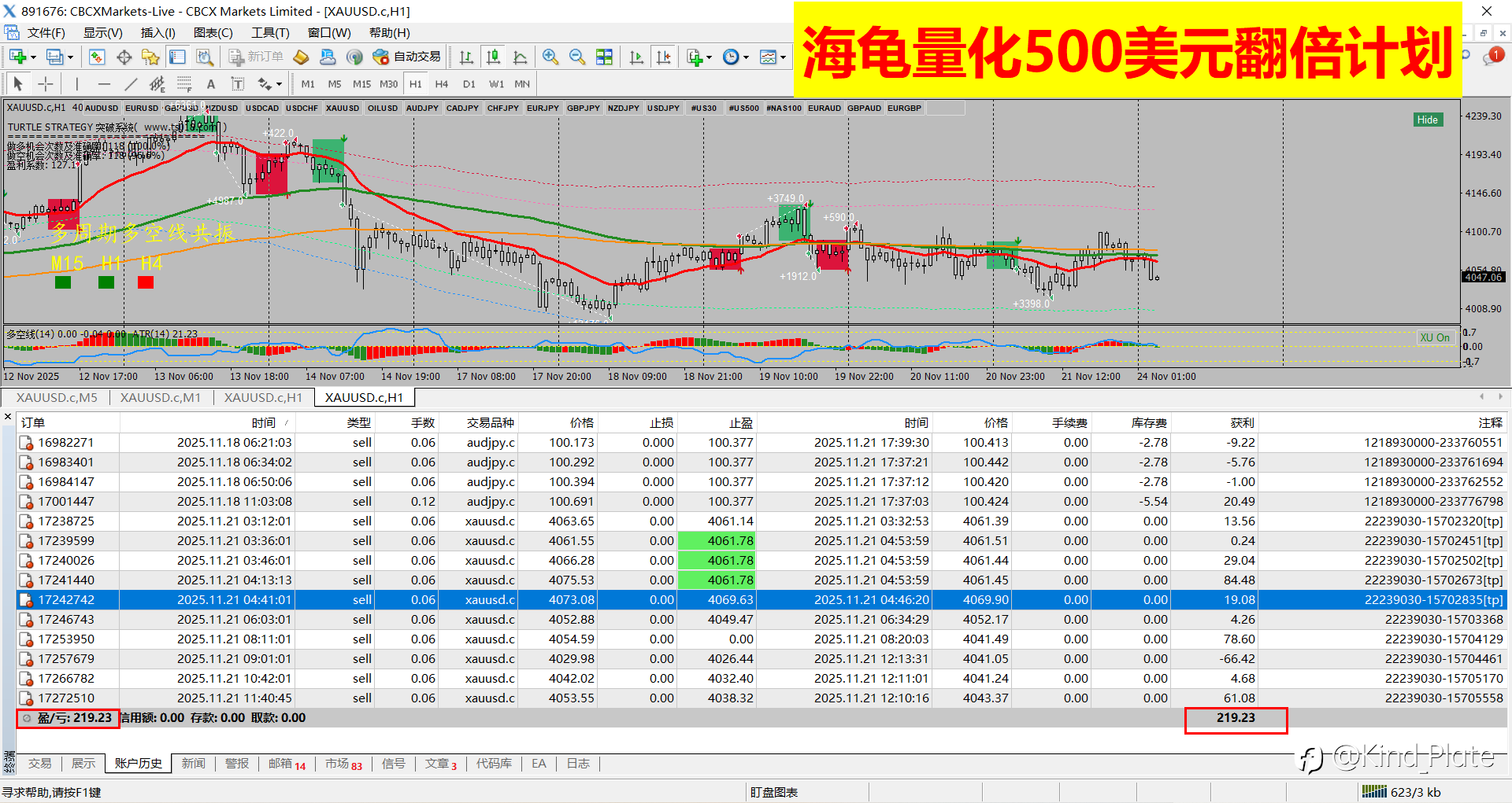 11.10日,海龟量化交易结果。500美元的账户,盈利112