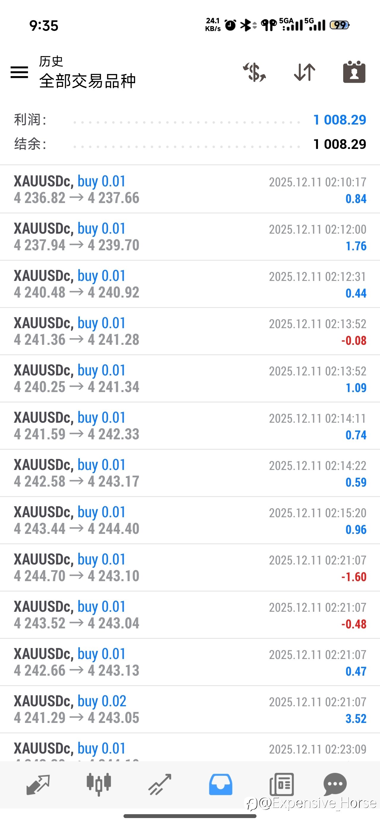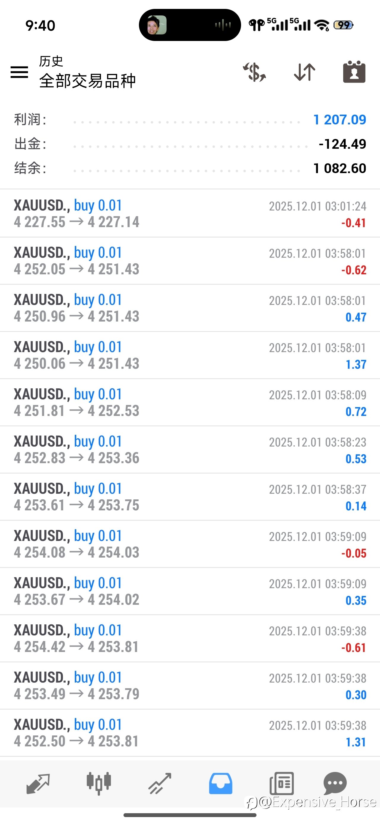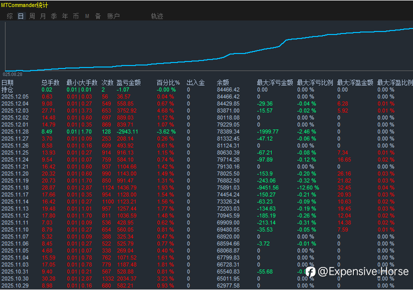 近期的盈亏图,实盘美金账户