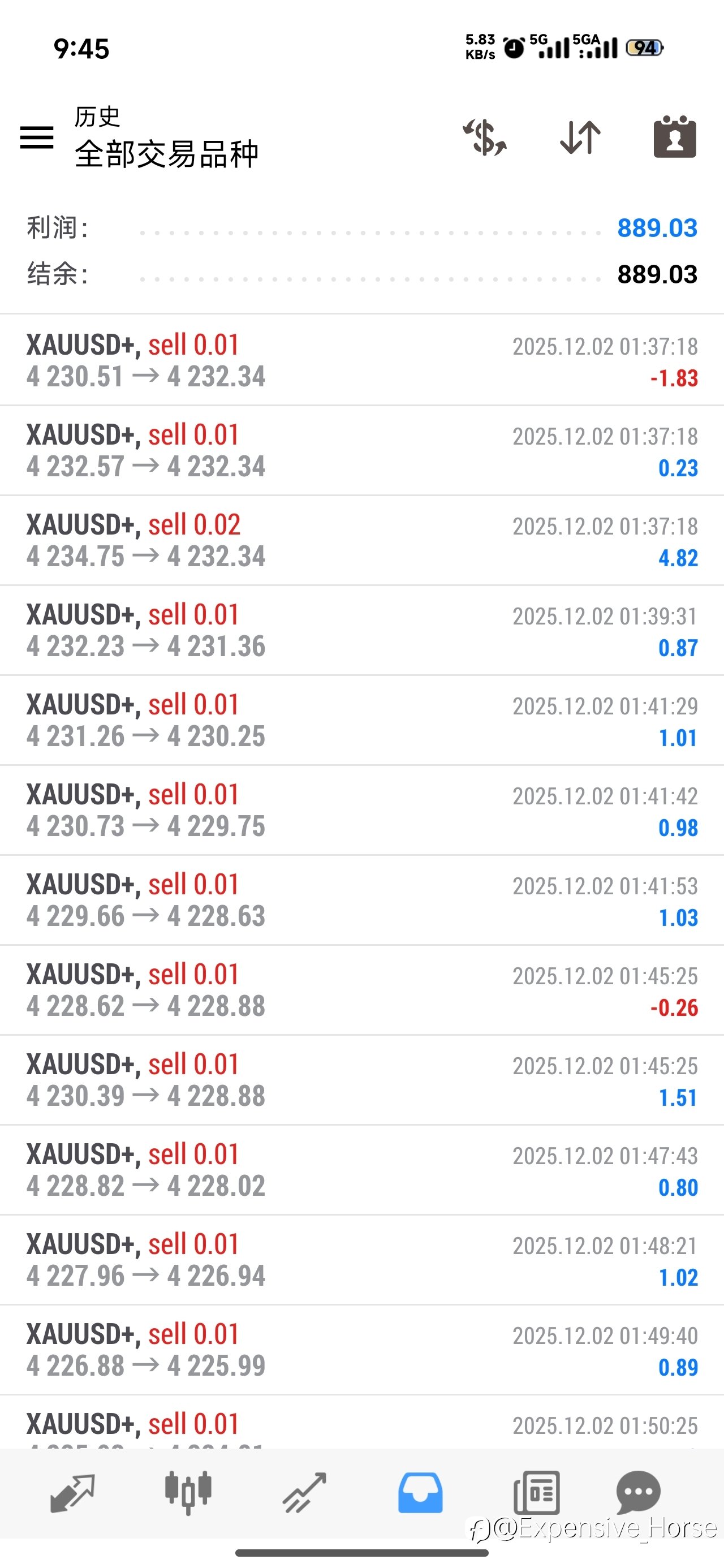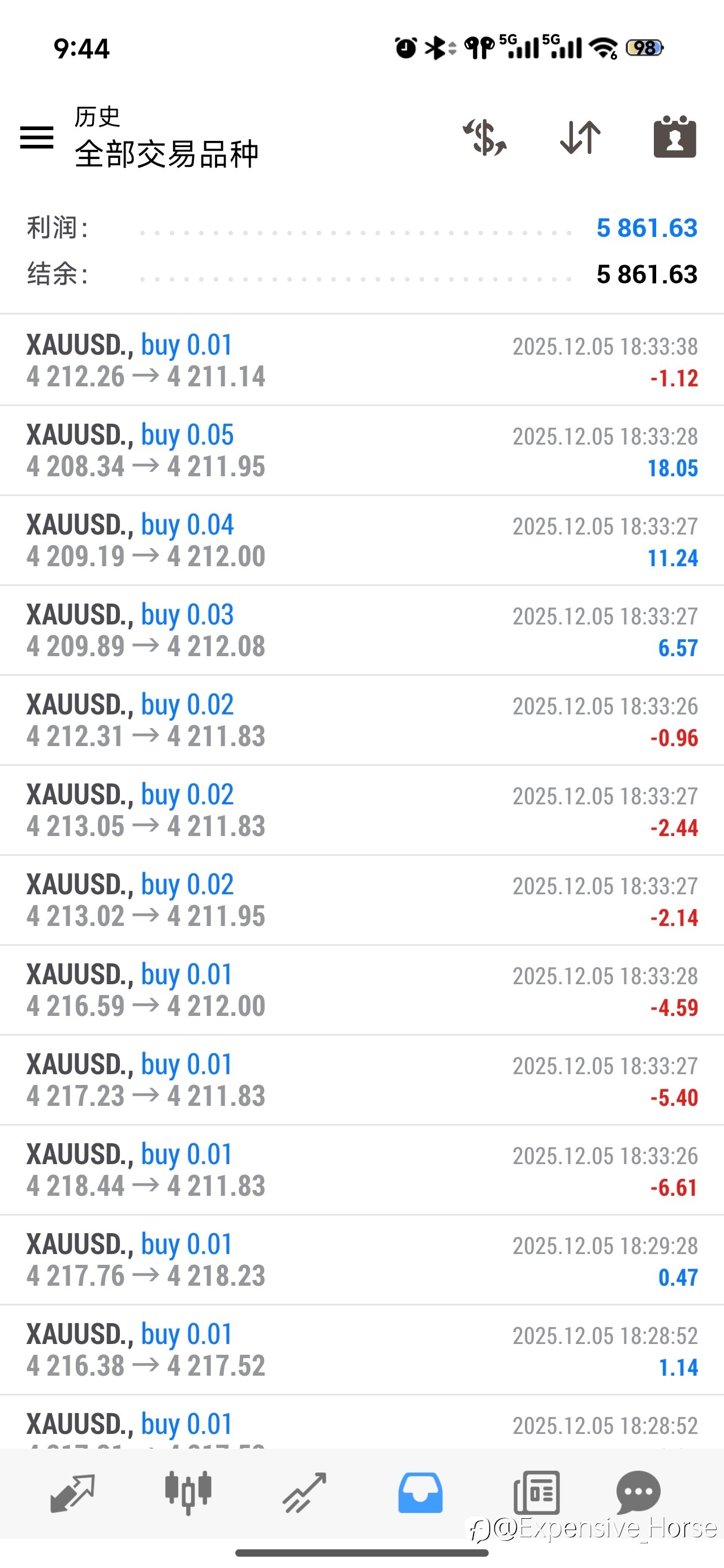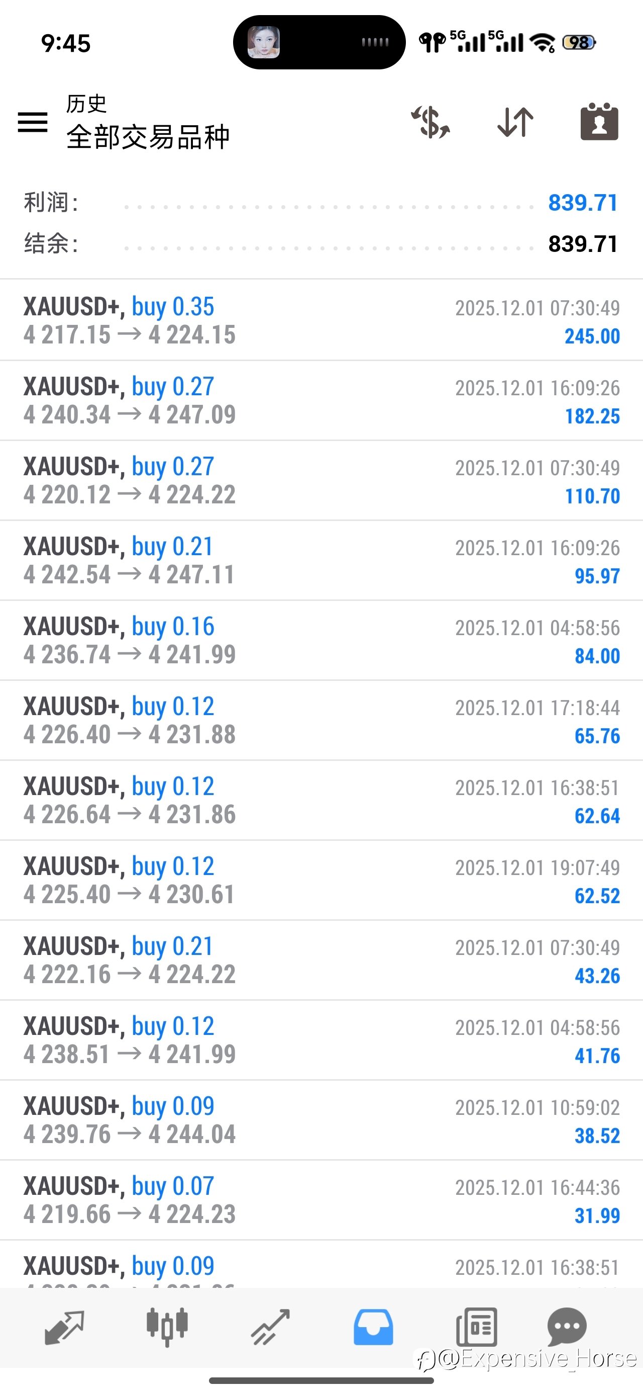 近期的盈亏图,实盘美金账户