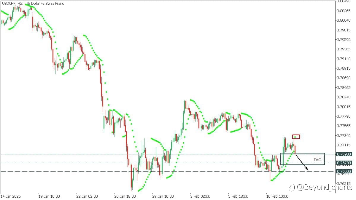 USDCHF – Bearish Setup Developing USDCHF is showing signs of weakness, with price approaching a potential break below the imbalance zone. 📉 Technical Signals Parabolic SAR has flipped bearish, si...