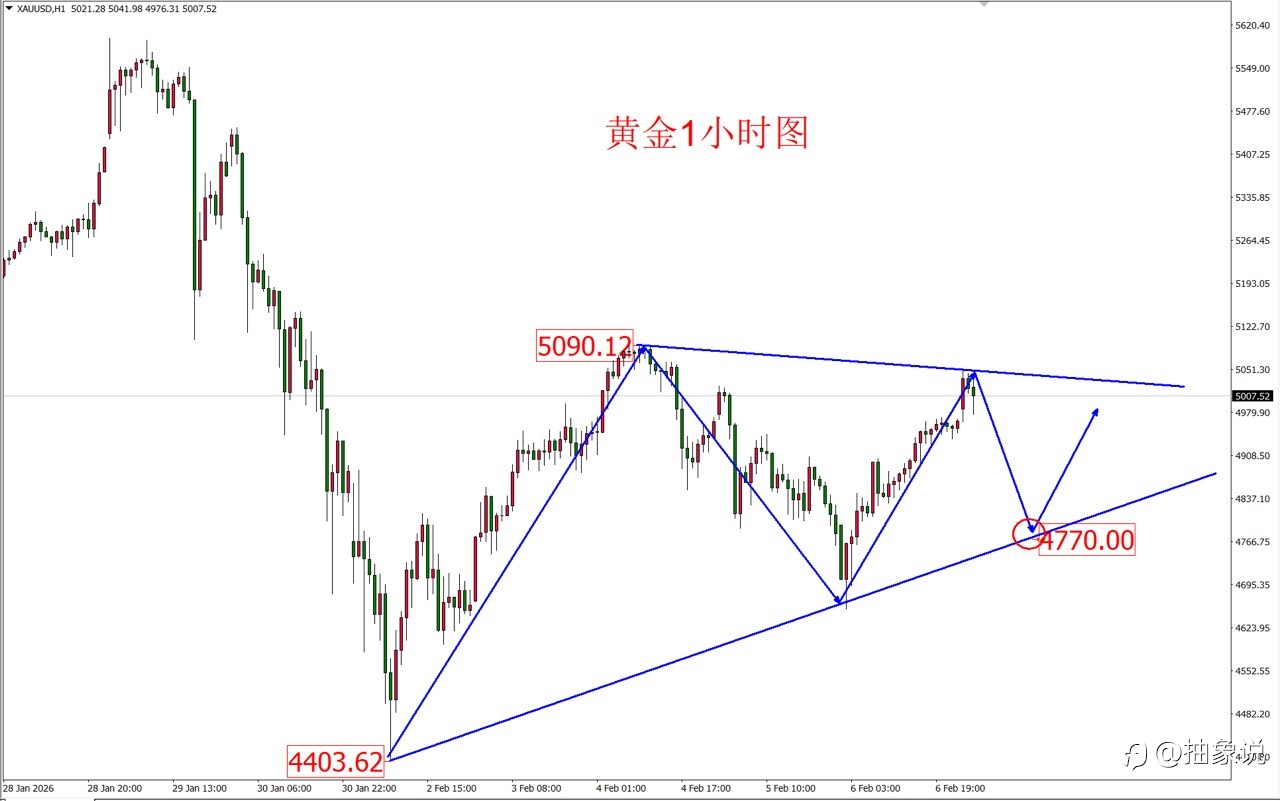 黄金早盘成功企稳5000点以上,多头进入最后的疯狂。今天不适合继续追多了,做空则容易被深套,这类行情选择观望才是最好的选择。因此今天没有给出图,也没有策略,建议大家管好双手。 技术面看,周一早盘开盘加速冲高,是很容易见顶的形态,因为接下来四天必须在周K上维持大阳线,否则很容易出长上影。所以追高的风险已然溢出。今天如果出现大幅回落,抄底也需要谨慎,建议关注1小时三色线支撑。(图文仅供参考不构成任何投资理财建议)