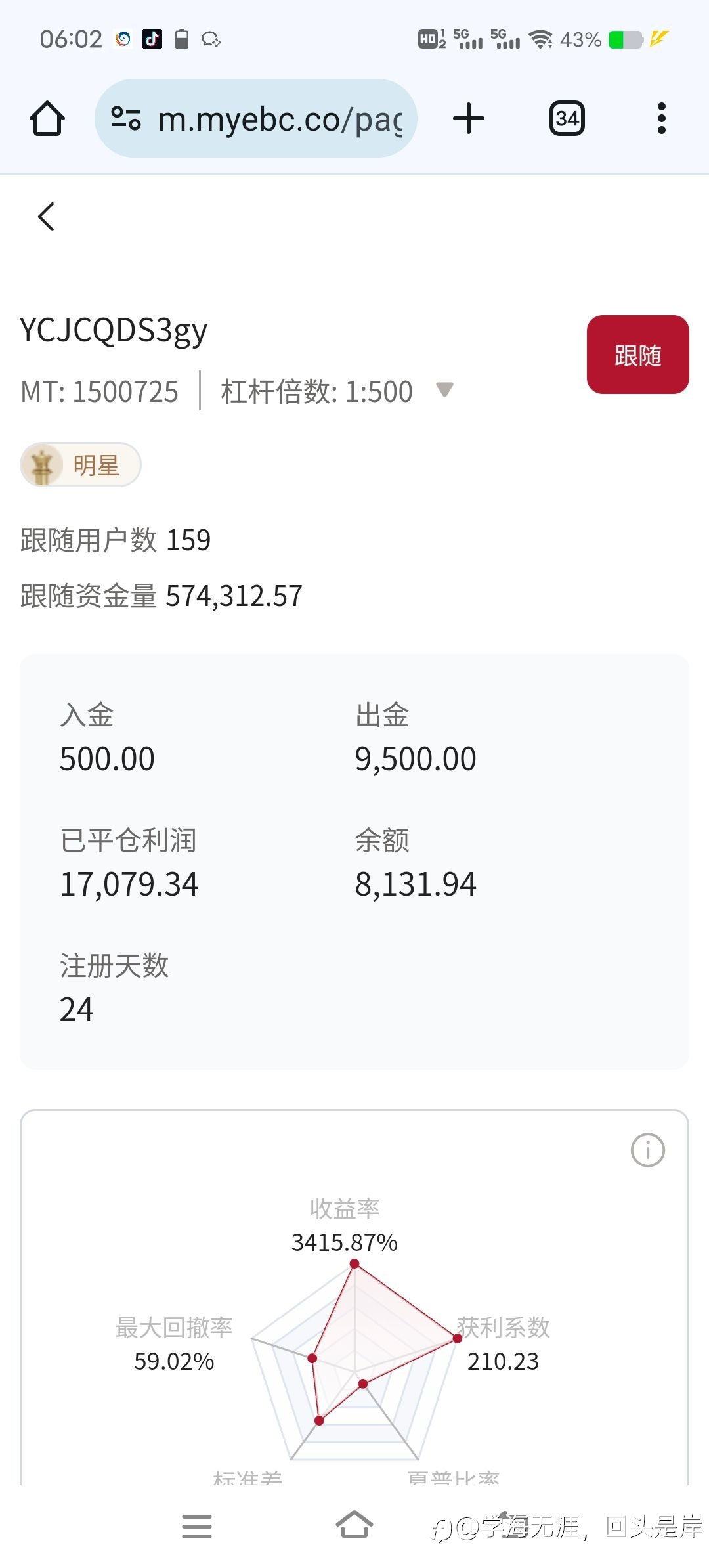 老师您好,看您测试了很多平台,我们平台有提供机构级别的流动性,会非常适合您的交易策略,另外还有建设成熟的跟单社区和针对专业交易员的扶持计划。我们平台有超过10w+的客户都想要找到风控稳定的好信号去跟随,满...