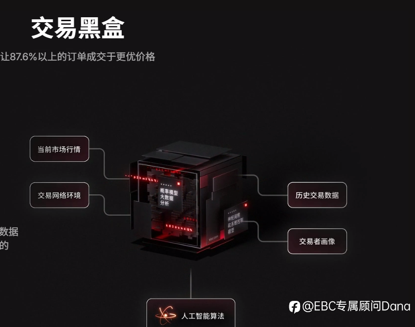 EBC交易黑盒,基于数千万次的历史交易数据和大数据模型,依托精准抛单算法,匹配更适合交易者属性的 LP,达成最优的成交价格。