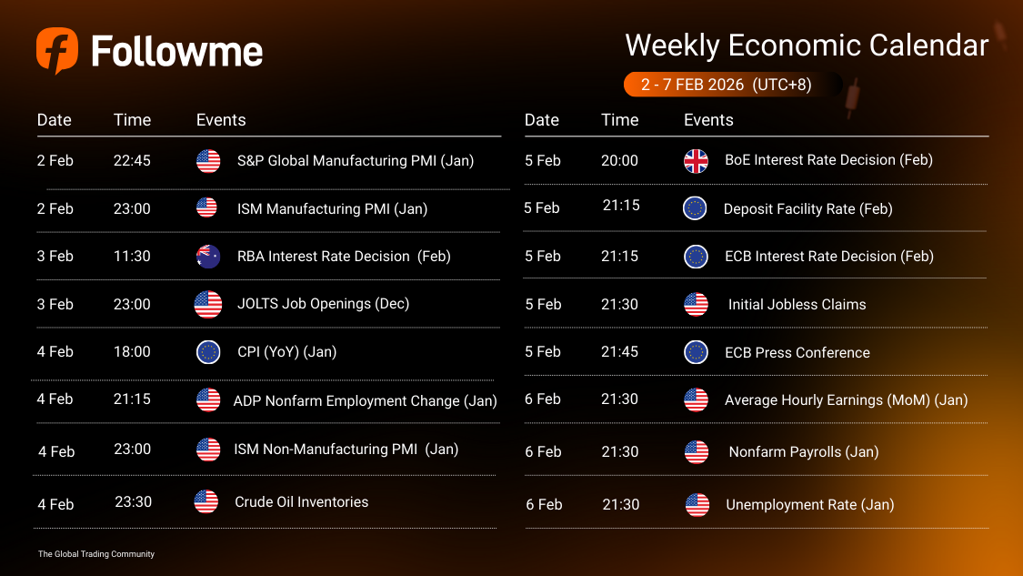 Weekly Economic Calendar: Week of February 2 - 7, 2026 (GMT+8) This week’s macro calendar is primarily influenced by U.S. inflation data (Core PCE) and growth checks later in the week (S&P Global PMIs), with the BoJ rate decision as the key risk event in Asia. Early in the week, U.S. Econo