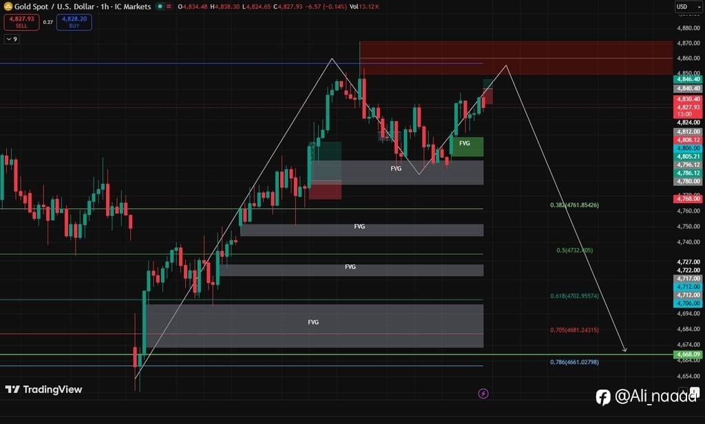 Breakout… or classic trap first? 👀 Gold just climbed back into a major resistance area around 4850 — the same place where sellers stepped in before. Price already filled the nearby FVG, so now ...