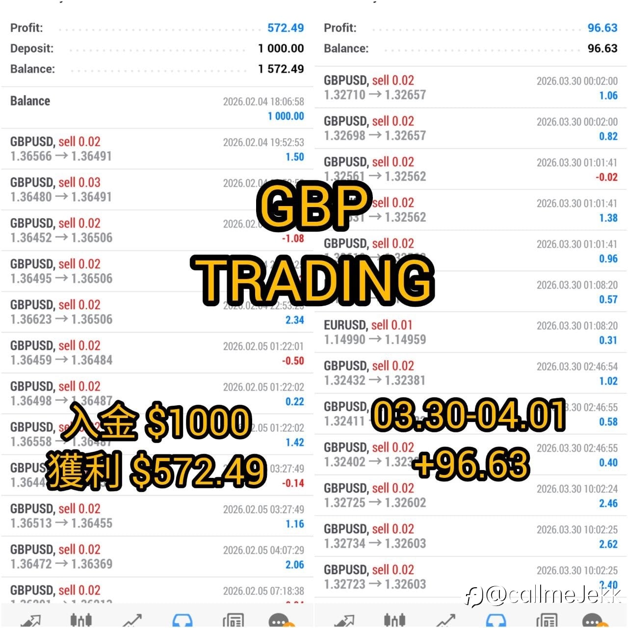GBP Trading is a trend following with strict reversal risk control. Trading on GBPUSD & EURUSD 💰 • this week's profit: +$96.63 • Total account growth: 57.2% • Status: available for copy trading...
