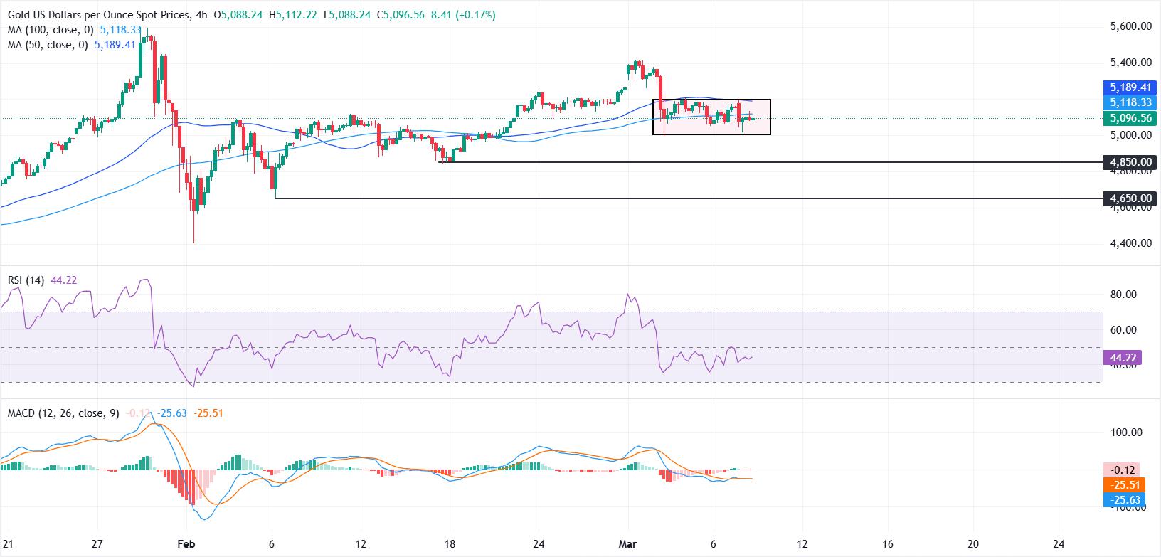 Emas memangkas beberapa kerugian sebelumnya saat Dolar AS dan imbal hasil Treasury mereda dari puncak terbaru.Harga minyak melonjak di tengah perang AS-Iran, meningkatkan kekhawatiran inflasi global, dengan investor cepat mengurangi taruhan pada penurunan suku bunga Fed.Secara teknis, XAU/USD tetap