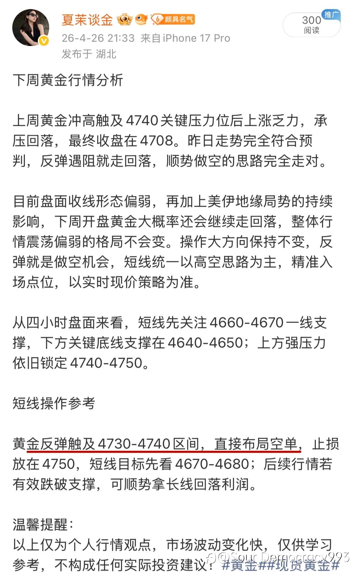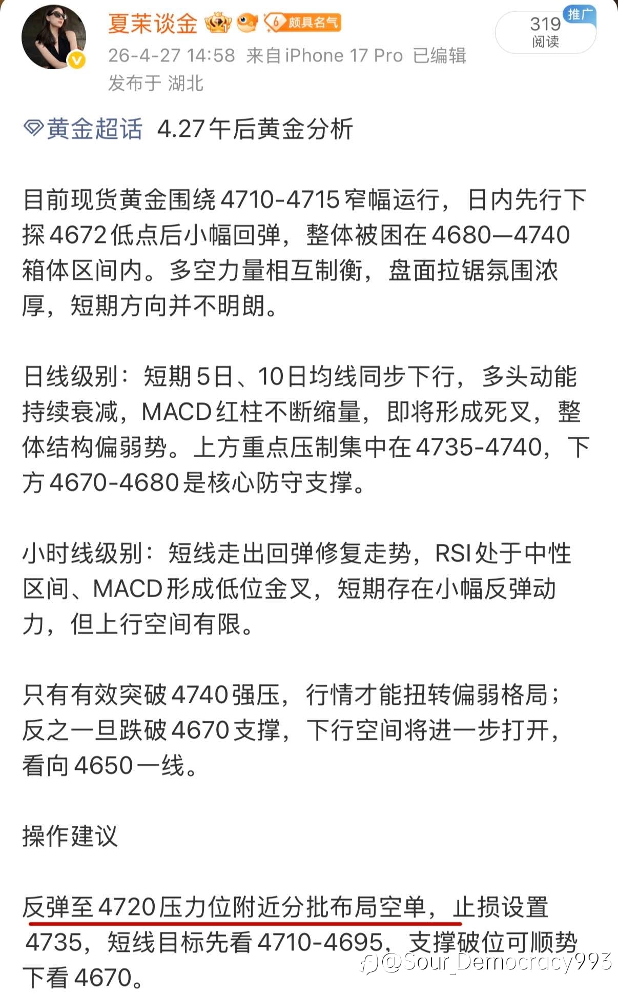 刚刚给出的空单现价单,有没有把握住 现在还在下行,马上到4550的目标,我们继续观望
