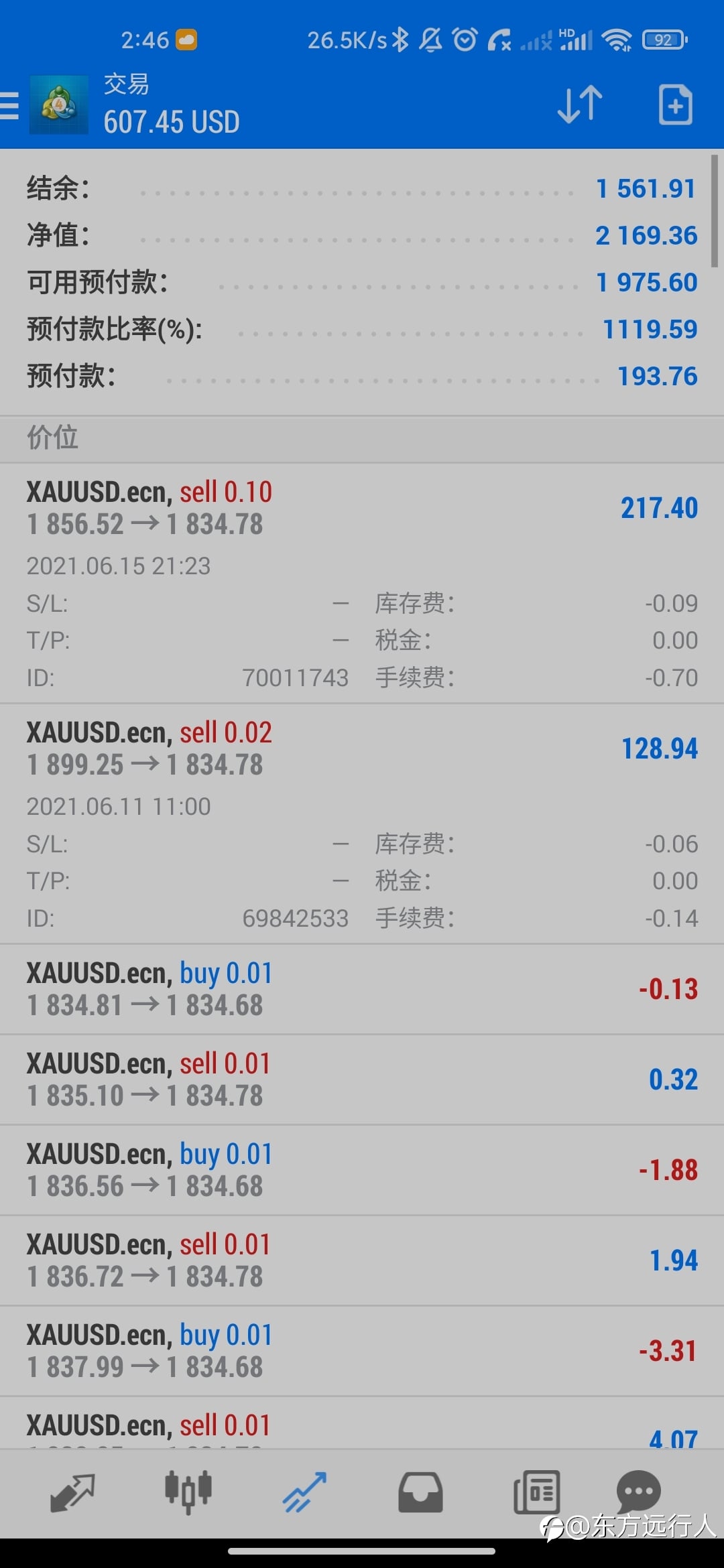 前两天,好不容易做多黄金浮盈1600刀,现在却被打止损只保留了100多美金的利润