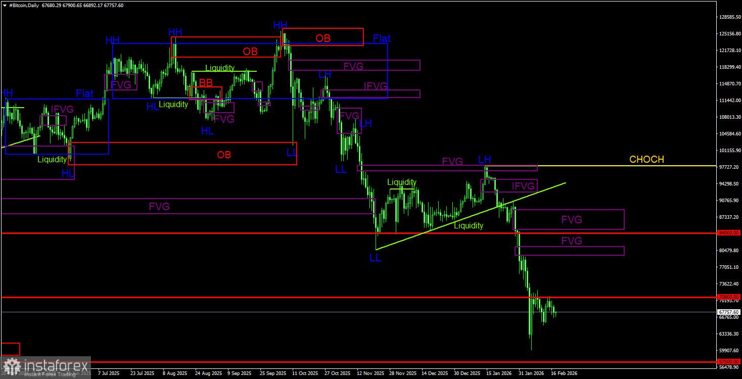 Bitcoin telah merosot lebih dari 50% sejak Oktober lalu dan secara umum menunjukkan sedikit minat untuk kenaikan. Pada chart 4 jam, pola "bullish" sesekali muncul, tetapi kenaikan harga lemah dan bersifat murni korektif. Kami menilai koreksi ini bisa berlangsung lama dan kompleks sementara tren turu