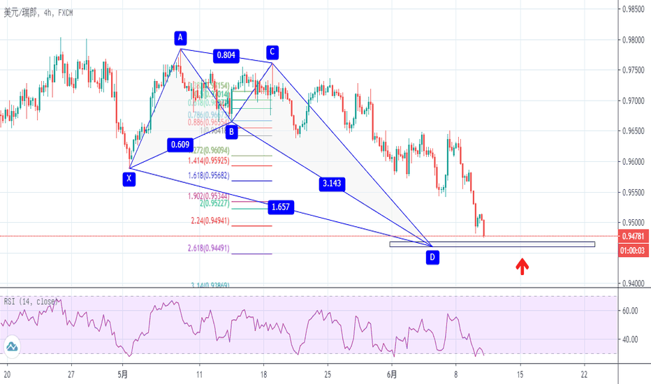 USD/CHF 潜在看涨螃蟹形态【交易观点】USD/CHF 潜在看涨做多机会,根据螃蟹形态交易规则,关注价格测试PRZ之后的反应,并结合相关指标的表现,再做出相应的交易决策和交易管理。 【和谐交易】和谐交易利用的是对特殊结构的识别,那些特殊结构包含明确的、连续的斐波那契比率队列,正是这些斐波那契比率队列量化并确认了和谐形态。这些形态通过计算价格结构的斐波那契比率,来辨识金融市场中的高概率反转点。这种方法,假设和谐形态或周期,像生活中的很多形态和周期一样会不断重复出现。关键是辨识这些形态,然后根据历史价格行为出现的高概率走势入场或出场。 和谐交易