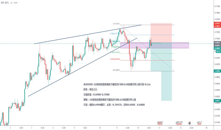 AUDUSD 1小时高位楔形通道下破结合FIB0.618回调空单入场计划-D.Liu