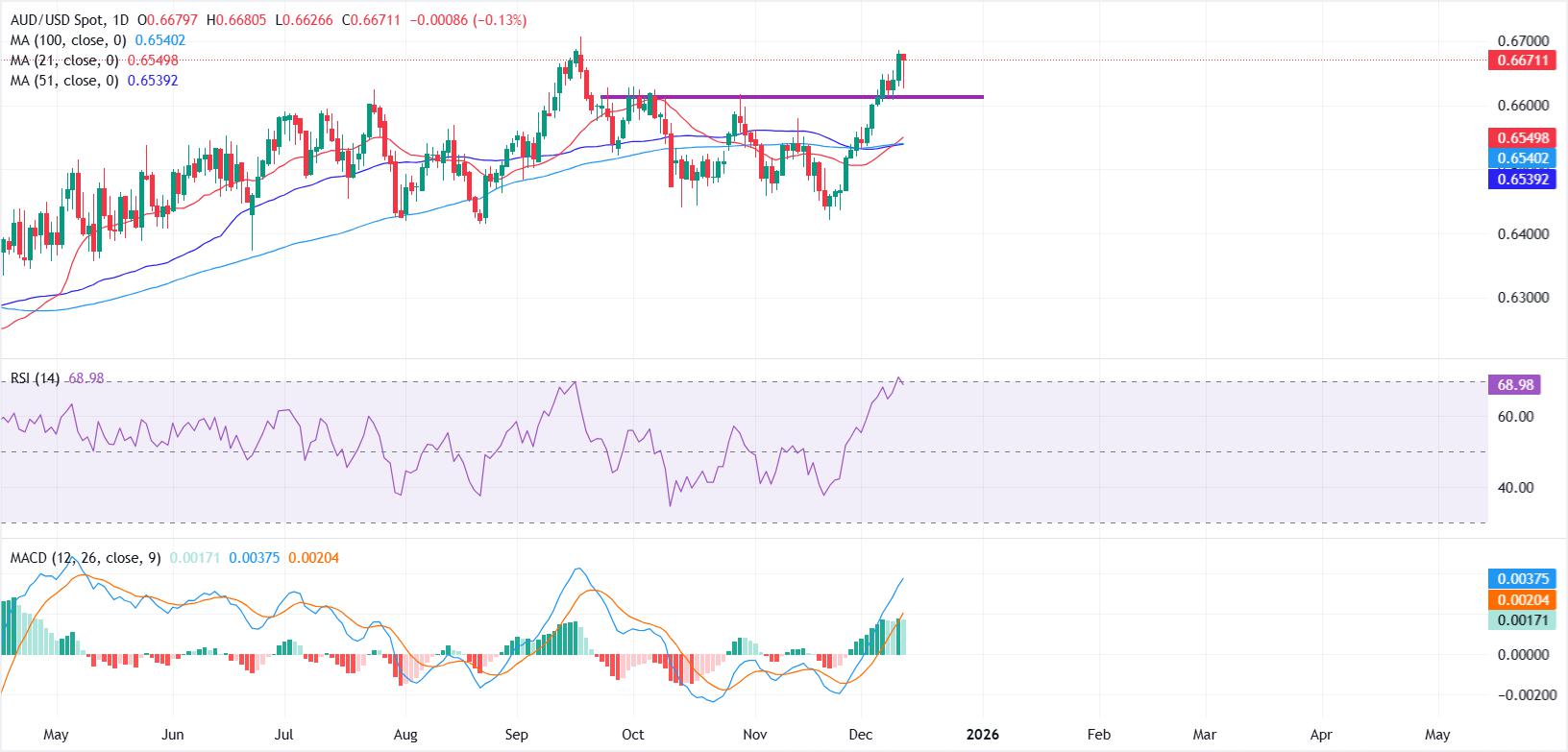 Prakiraan Harga AUD/USD: Sinyal Jenuh Beli Muncul Saat Pasangan Menguji Puncak Tahunan