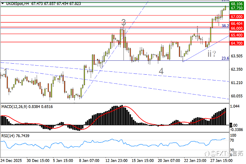昨日美元指数下跌1.33%至95.75,盘中触及95.57的四年低点。 美元的对手货币,欧元,英镑等大幅上涨;美元的对手商品,黄金,白银等再度连创新高。 对于黄金这样连创新高的产品,因为价格在新高上,已经没有可参考的支撑/阻力位,也几乎没有出现像样的回调,交易难度实则增加,而非减少。 今天想重点看有技术参考的产品--原油。这种产品虽然在媒体上会被黄金,白银盖过风头。但因为有历史价格参考,交易稳定性实则要强很多。在1月初原油几乎就在最低点时,笔者就多次指出原油存在触底机会,并是多周期共振的触底。现在回头看,这个判断很准确。先简单捋一下原油的基本面,再从技术面看原油。 1月初,特朗普对伊朗磨刀霍霍