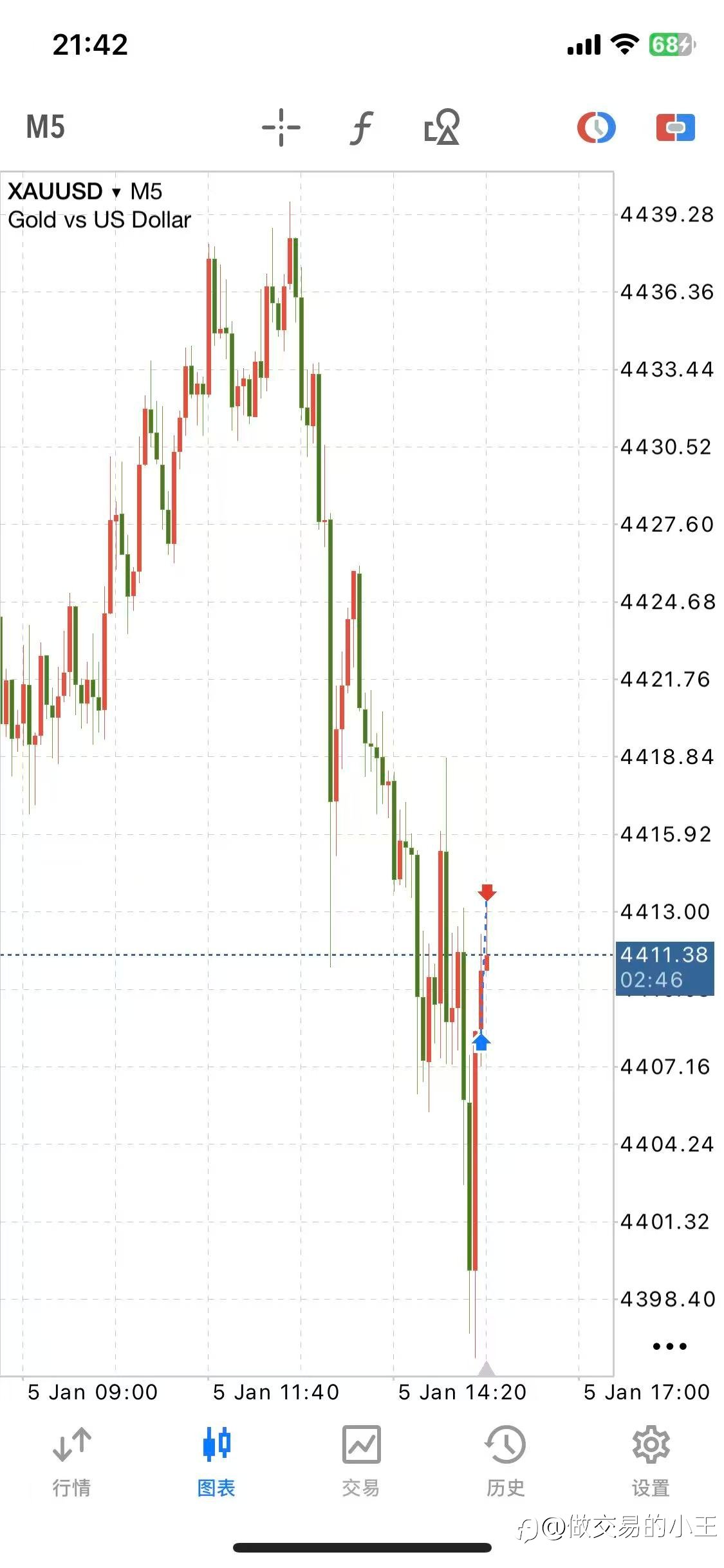 行情重回上涨趋势了,按计划回调到4401这个支撑,出现阳包阴入场
