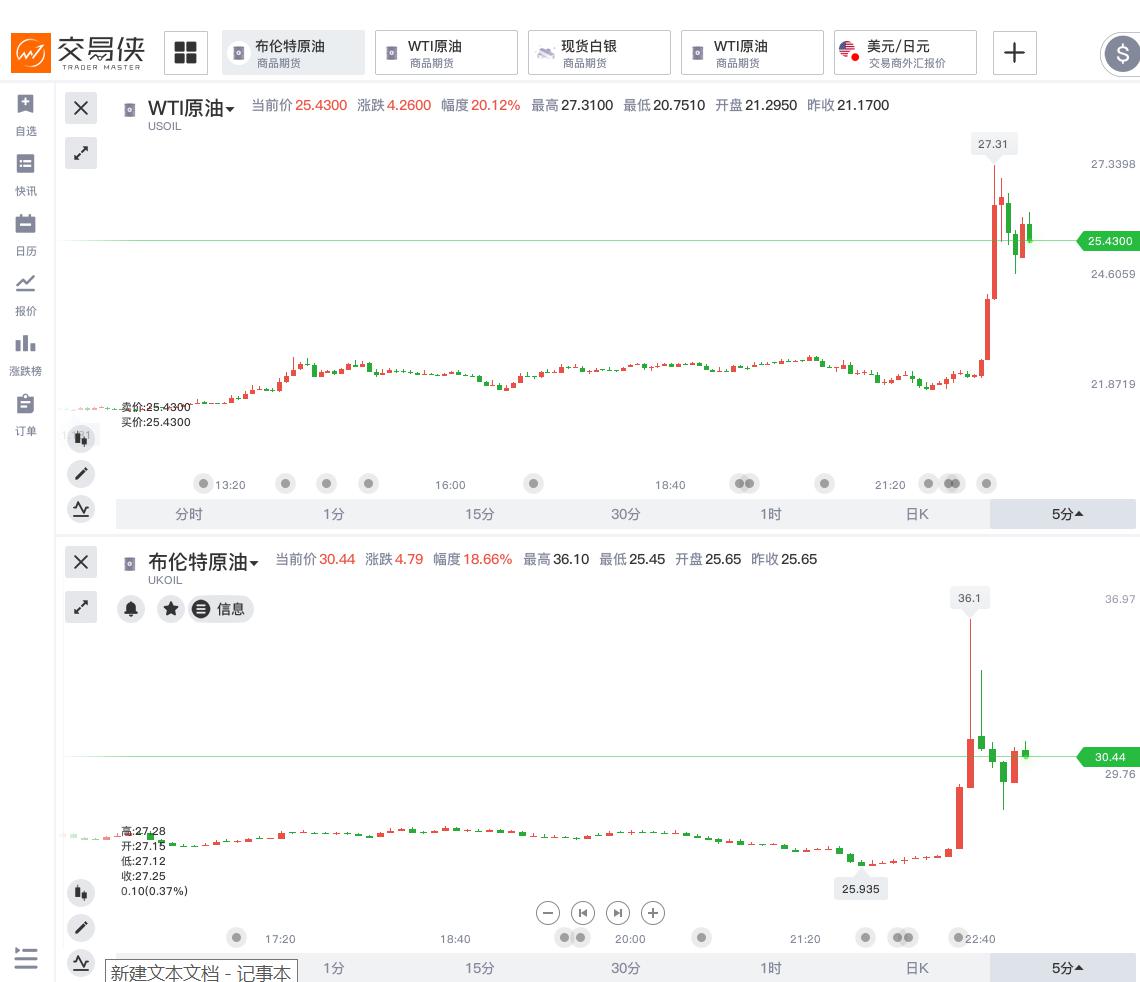 特朗普斡旋沙特俄罗斯价格战,国际油价一度暴涨45%