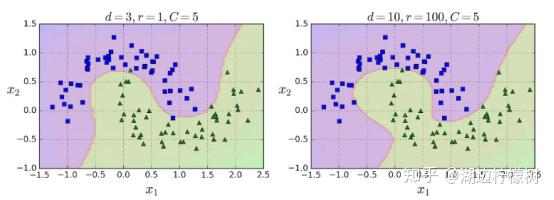 3.1 多项式核 添加多项式特征很容易实现,不仅仅在 SVM,在各种机器学习算法都有不错的表现,但是低次数的多项式不能处理非常复杂的数据集,而高次数的多项式却产生了大量的特征,会使模型变慢。 幸运的是,当你使用 SVM 时,你可以运用一个被称为“核技巧”(kernel trick)的神奇数学技巧。它可以取得就像你添加了许多多项式,甚至有高次数的多项式,一样好的结果。因为你并没有增加任何特征,所以不会导致大量特征的组合爆炸。这个技巧可以用 SVC 类来实现。让我们在卫星数据集测试一下效果。 from sklearn.svm import SVC poly_kernel_svm_clf = Pip