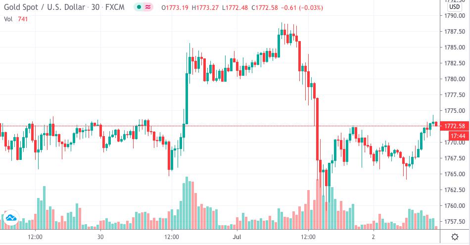 每日一图:黄金受支撑反弹,关注1773附近破位
