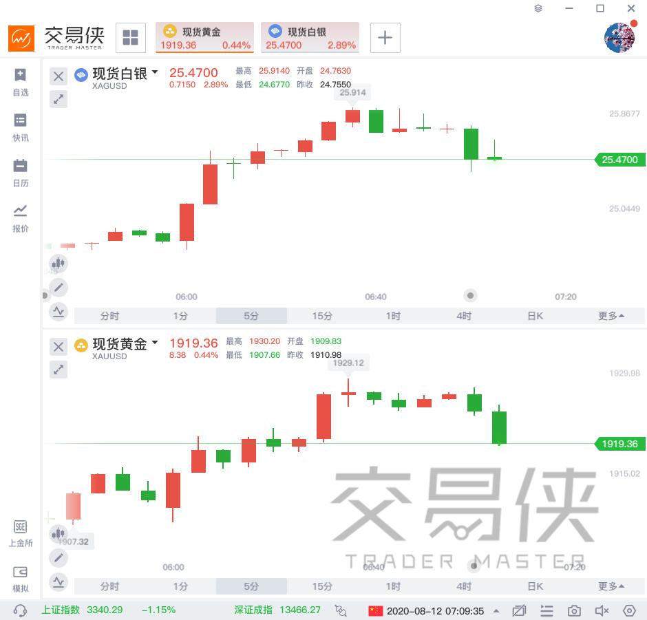 开盘现暴力拉涨!白银涨超4%,黄金突破1920