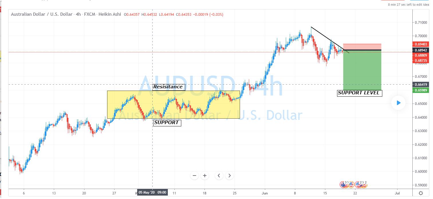 AUD/USD:Facing bearish pressure from descending trend line, potential for further drop