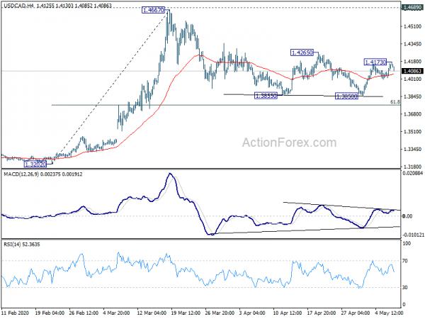 Daily Pivots: (S1) 1.4062; (P) 1.4110; (R1) 1.4196; USD/CAD edged higher to 1.4173 but retreated quickly . Intraday bias remains neutral first. Price actions from 1.4667 are seen as a corrective pattern. On the upside, break of 1.4265 resistance will indicate completion of the correction. Intraday b