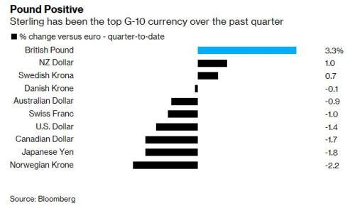 在美银美林、摩根士丹利等投行之后,高盛是最新一家押注英镑将在2020年上涨的华尔街投行,因为该行将下个月的英国大选视为解决英国脱欧问题的一条途径。 高盛策略师在其《跨资产最佳交易策略》报告中称,英镑兑欧元料将升值,而英国政府债券可能会下滑,因为12月12日英国公投后的脱欧进程可能消除投资不确定性。 在目前的大多数民调中,保守党领先,首相鲍里斯·约翰逊旨在利用多数席位让议会通过他的脱欧协议,在1月31日截止日期之前退出欧盟。 “我们的经济学家认为,如果保守党在下个月的选举中获胜,可能会让英国脱欧进程迅速推进,以及实施更加扩张性的财政政策,”高盛策略师在周四的报告中写道,“英国脱欧局势