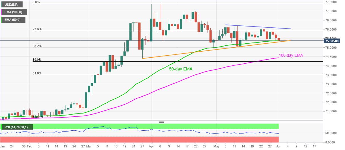 USD/INR Price New: Indian rupee probes 50-day EMA, two-month-old resistance line