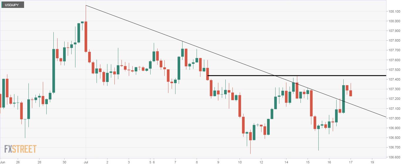 USD/JPY has carved out a double bottom pattern on the hourly chart. A move above 107.43 is needed to confirm a bullish breakout. USD/JPY is currently trading at 107.24, having faced rejection at 107.36 early Friday. The pullback from session highs puts a question mark on the sustainability of the