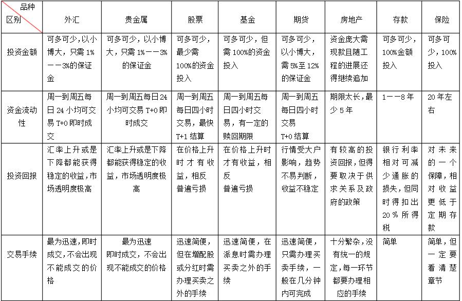投资品种对比(认真比较)