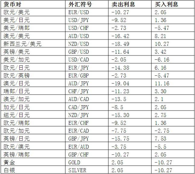 隔夜利息是什么?因为外汇隔夜利息通常情况下比较的少,因此很多投资人对此并不是特别的在意,但是隔夜利息再小也是自己的钱,下面我们就来详细的了解一下外汇隔夜利息和外汇平台隔夜利息对比情况。 外汇隔夜利息是什么? 如果投资人炒外汇选择持仓过夜的话,就会产生隔夜利息。隔夜利息的大小主要和银行的拆借利率有关。 隔夜利息有正负之分,正隔夜利息盈利,负隔夜利息亏损。我们向银行存钱会产生利息,我们向银行借钱的话就需要支付银行利息。在进行交易的时候,其实就是买入和卖出货币的过程,当然会产生隔夜利息。外汇隔夜利息并不是全球亏损的,外汇套息交易就是利用隔夜利息来赚钱的。 外汇平台隔夜