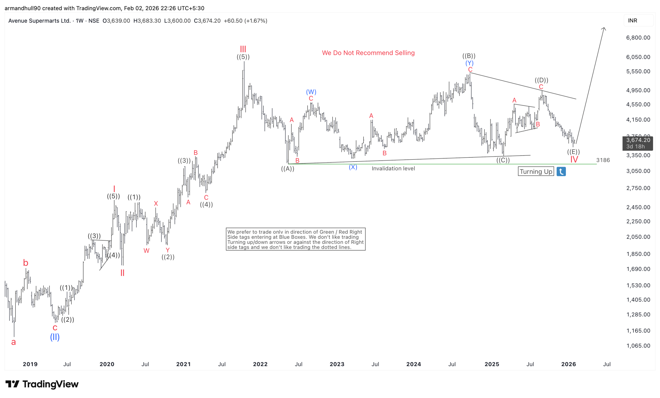Wave IV consolidation since late 2021 appears to be maturing near key support. Elliott Wave structure favors a Wave V breakout toward the 6,600–6,800 zone Avenue Supermarts Ltd. (DMart) is showing a strong bullish structure on the weekly chart based on Elliott Wave theory. The long-term trend turned