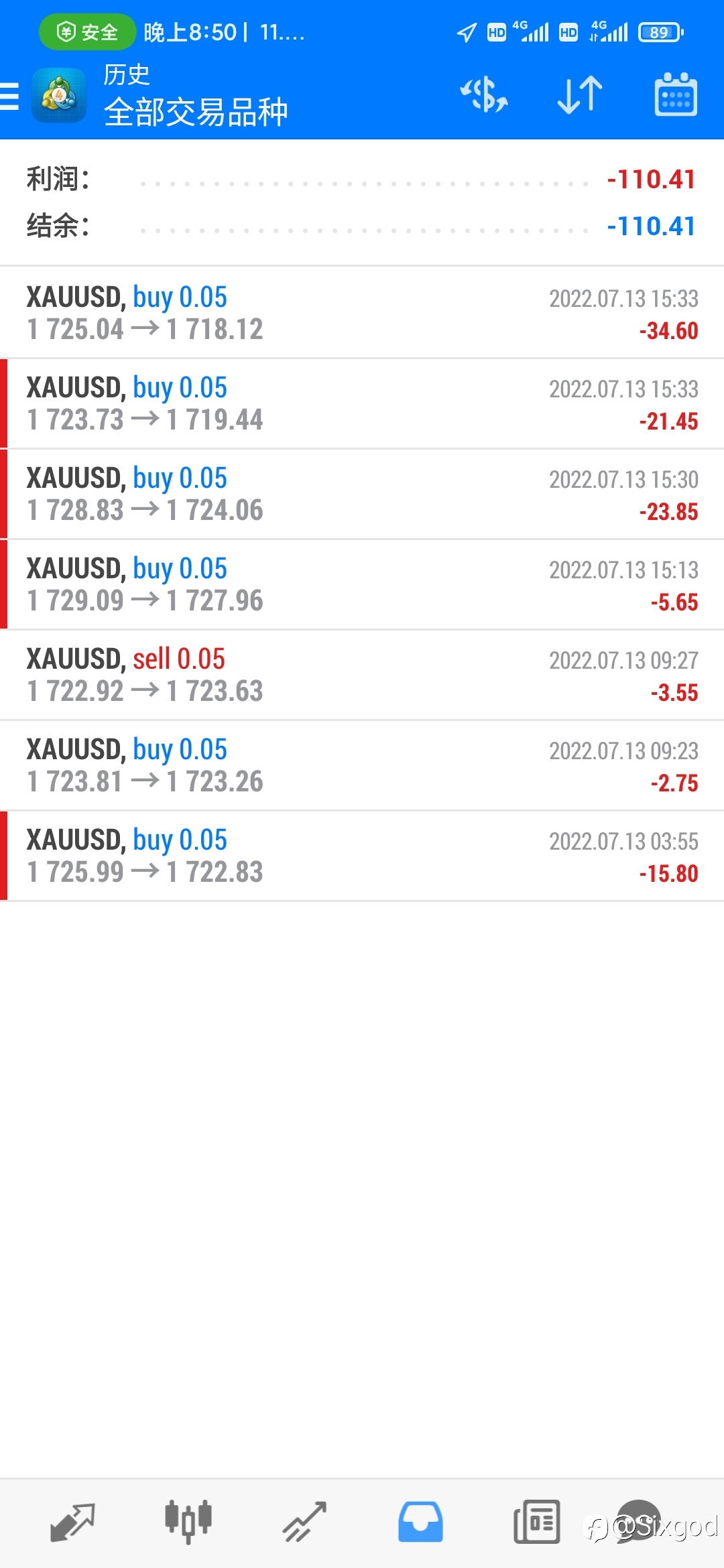 以后定个规矩,每天亏损空间不超过6美金,资金比例不超过3%😭😭