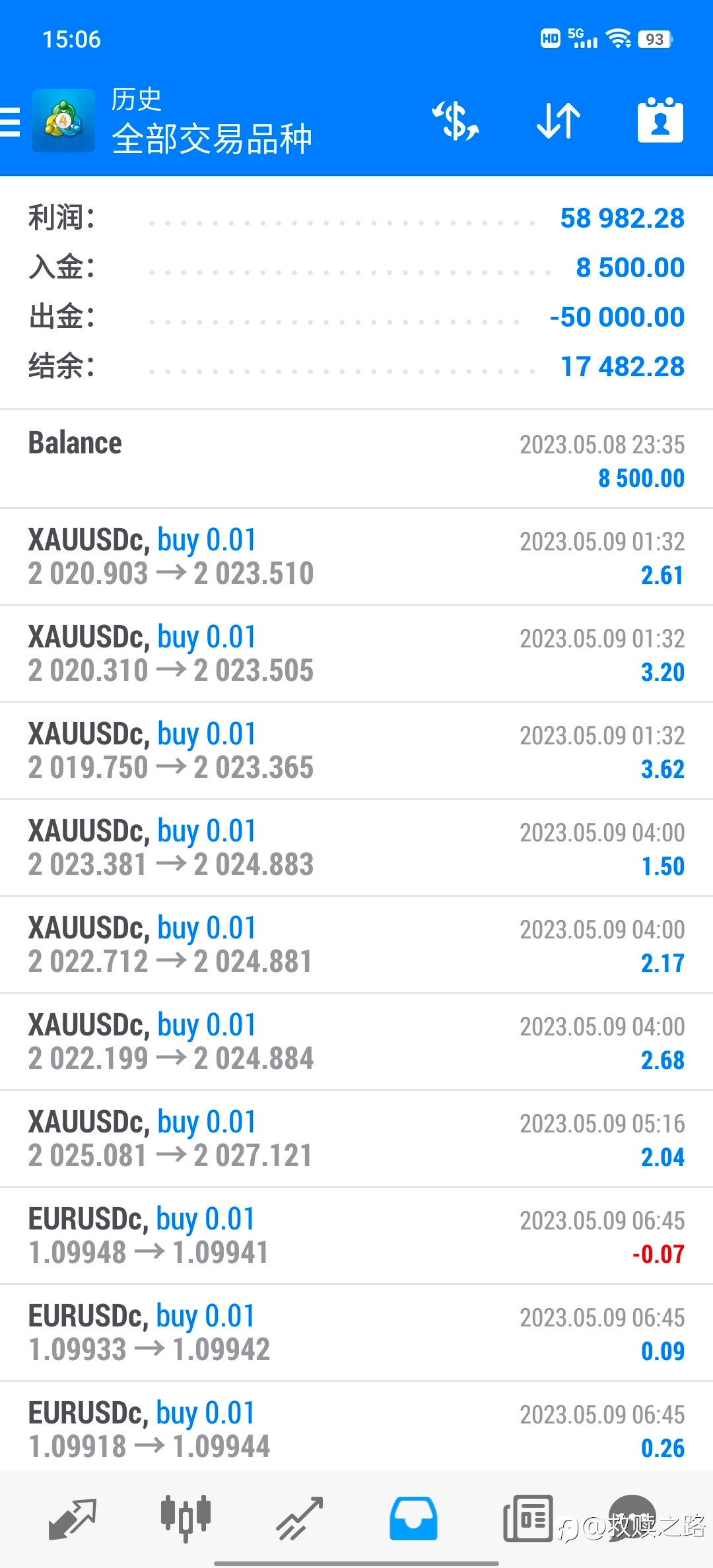 5月8号入金85美金,现在470,大概接近5倍。记录下来,看能做到多少。我才用的是复利的仓位管理模式,85美金当然也只是玩玩而已。但我依然使用了仓位管理,虽然是迷你账户,但逻辑是想通的,至于为何为何要这样一直做...