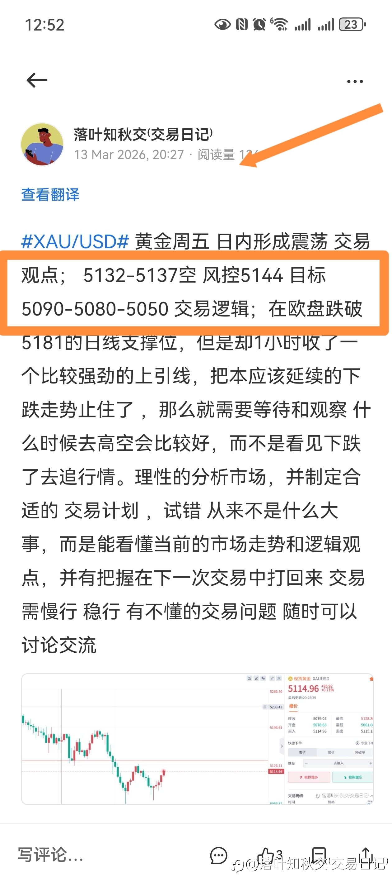 周五黄金晚间继续破低点下探 交易观点;原计划准备在5132-5137去空 但是市场并没有给到理想的价格 ,踏空了 错过一波下跌,仅此而 交易逻辑 ;盘面上很明显的空头趋势和下跌的信号 ,...