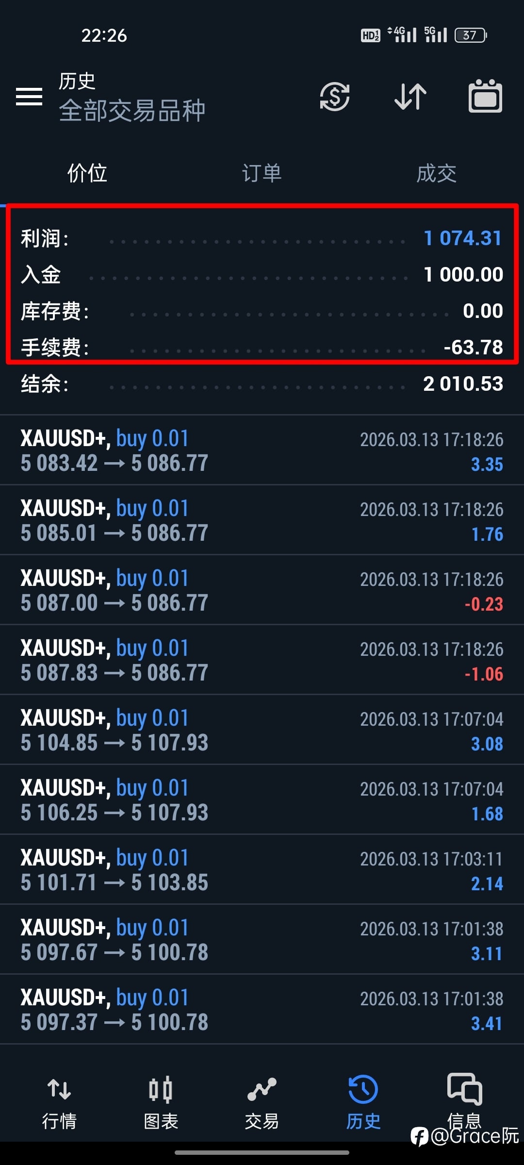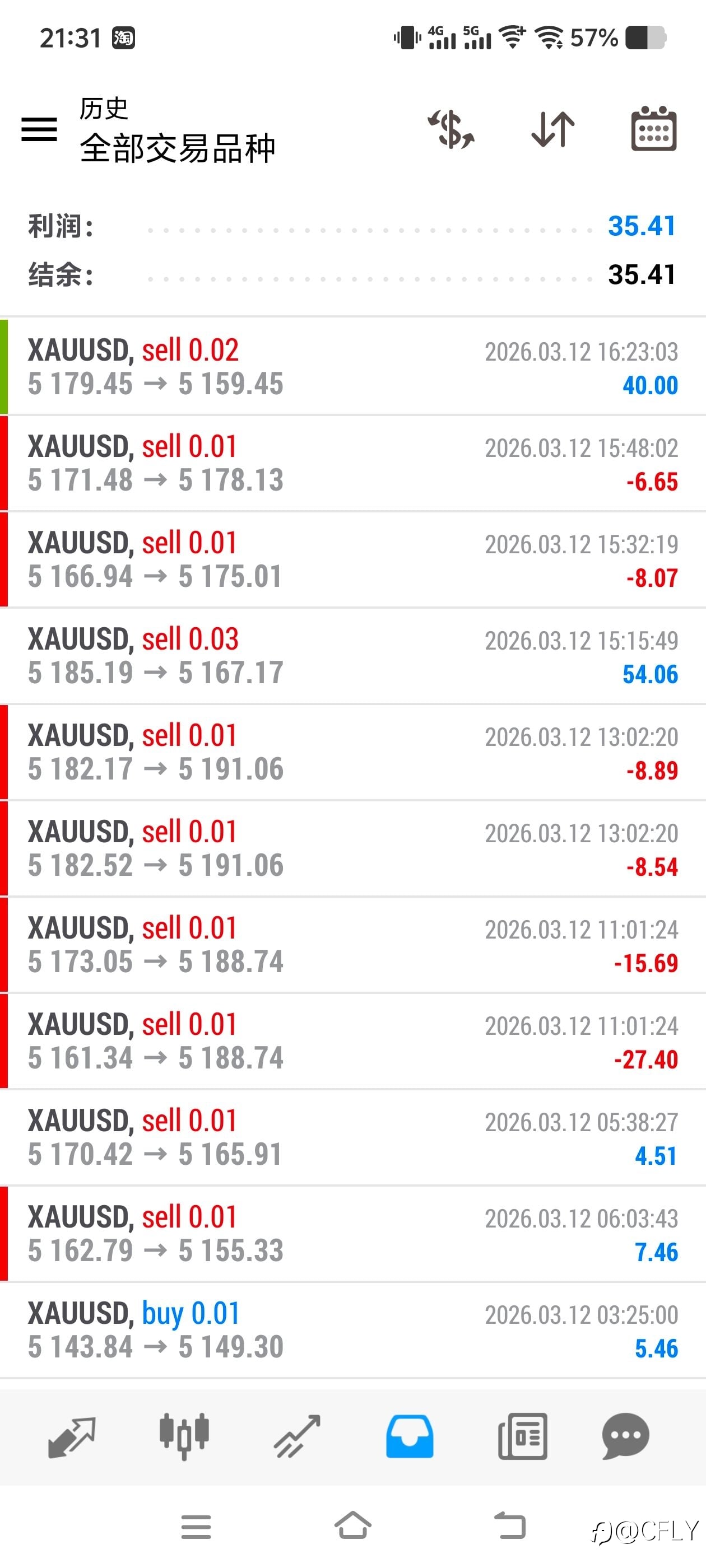 今天(3月13日)的黄金 XAUUSD 整体依然处于震荡整理阶段,行情没有出现单边趋势,而是在关键区间内反复拉扯。这样的市场环境其实非常考验交易者的耐心和节奏把控。 从盘面来看,黄金在经历前几天的波动之后,多空双方的力量相对均衡。价格多次在支撑与压力之间来回试探,但始终没有形成明确的突破。对于短线交易者来说,这种行情更适合区间思路,而不是盲目追涨杀跌。如果在震荡区间顶部追多,或者在低位追空,很容易被市场反复“洗出去”。 今天的交易让我再次意识到一个重要原则:在震荡行情里,等待比频繁交易更重要。当市场没有给出清晰方向时,减少交易次数、耐心等待关键位置,往往比不停进出更稳定。 另外,风险控制依然是