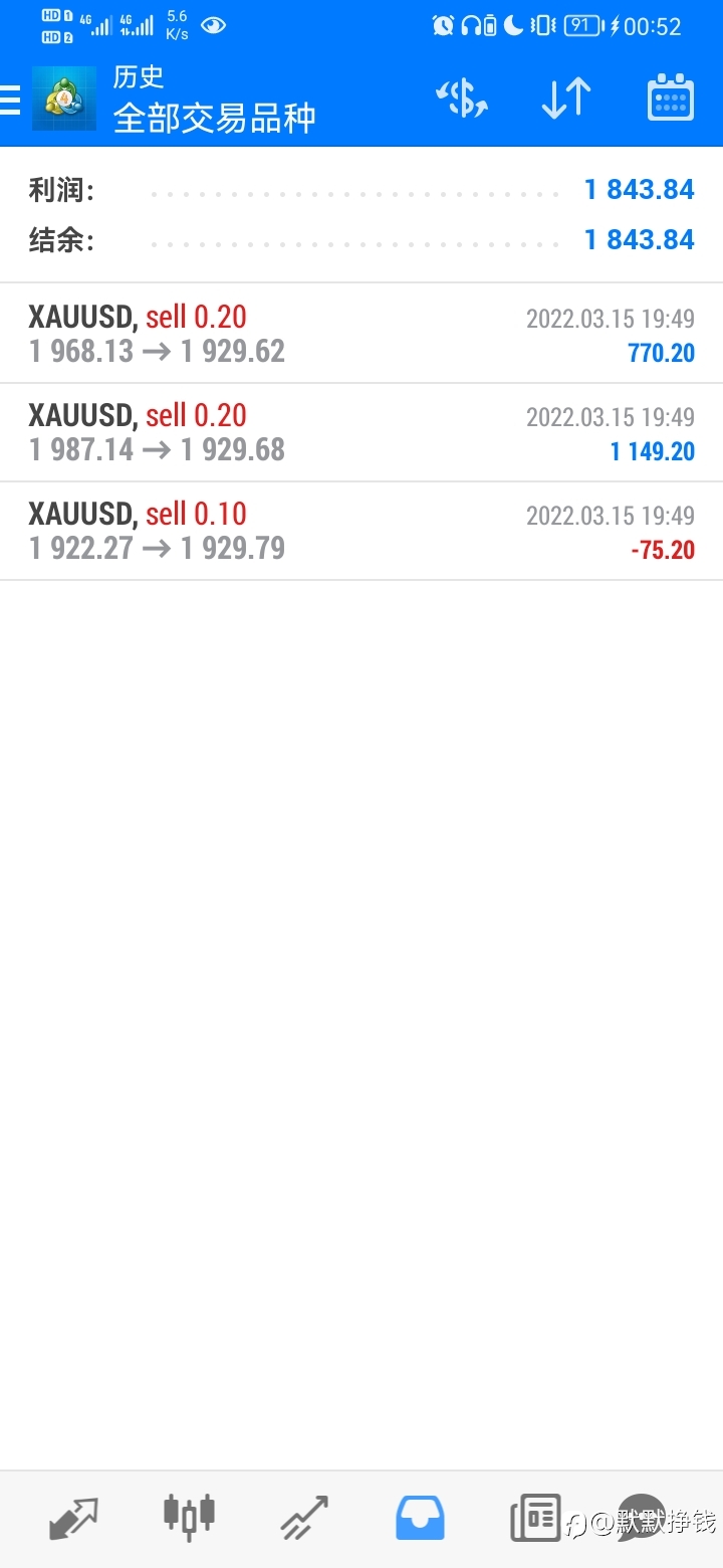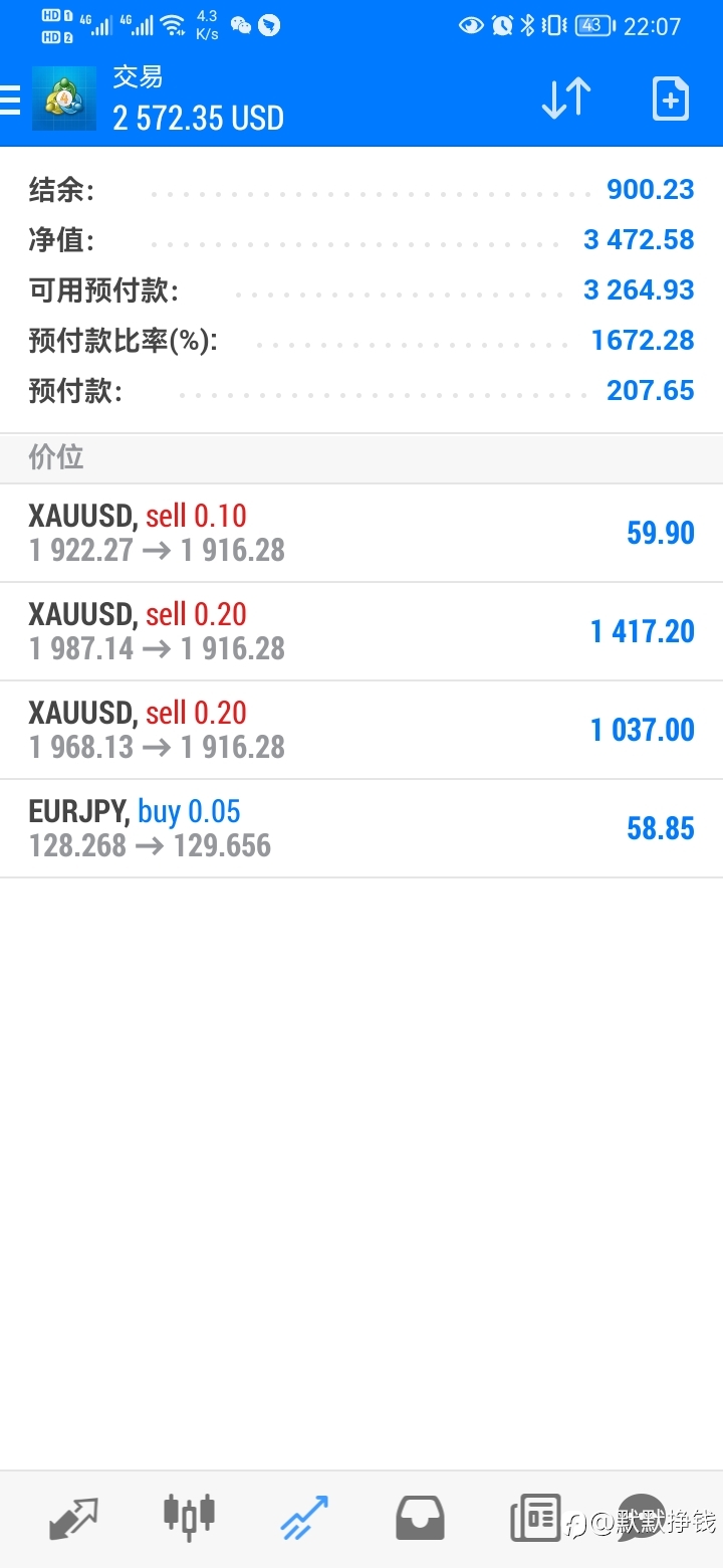 在交易这个行列,也经历过市场的磨练,最终还是没到入门的级别,不经让我对交易提出一些问题,以下是我最近的一些问题和想法 1、对盈利的看法是什么 所谓的盈利,排除EA外,主观交易者不能把挣小钱定义为盈利,部分交易者会经常只拿到短期的一些看的到的利润。 比如一下这个订单,虽然是盈利出局,但是这风险回报比来算的话是风险大于回报的。我经常会为了一些看的到的利润而方式很多长远利润。磅美这单是最明显的例子,入场方式是一个强力下跌的破位单,当时觉得能挣到500U是一笔不错的交易的,到从整体行情来看的话。这无疑是放弃了后面一整段大的行情,现在磅美还依然是强力的空头趋势。 2、对止损是怎么理解 止损