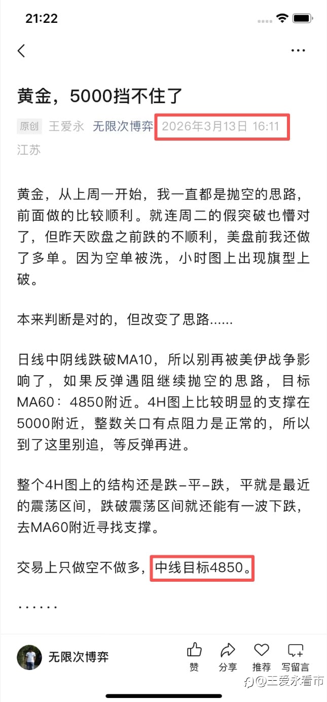 #黄金#如果一直关注战争的消息,做空还真是没信心。但实际上,开战以来就上周一高开一下,后面基本都是下跌,如果一直是抛空的思路,赚麻了。 我前半段是抛空的思路,但昨天看到小时图上破就做多了,于是就止损了。...