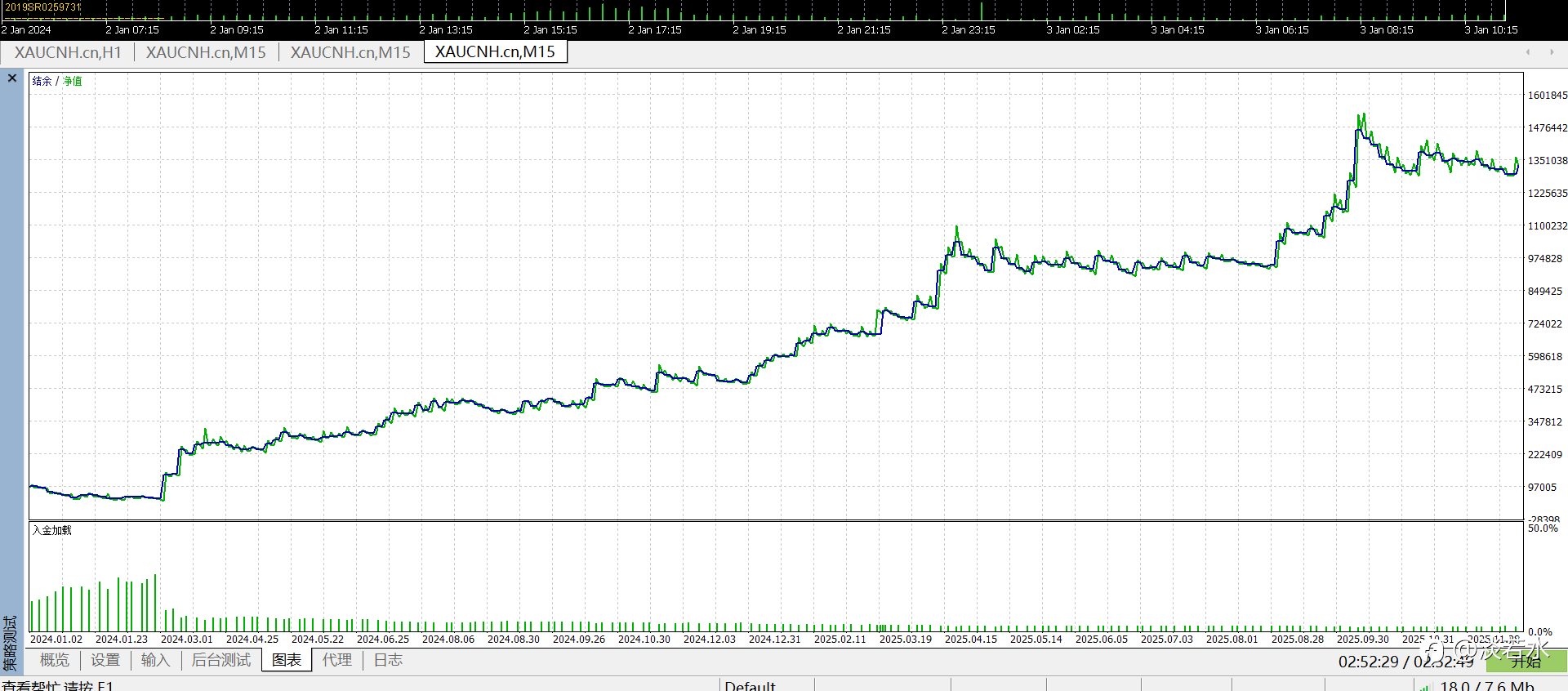 测试XUACNH两年的数据,一个简单的趋势线跟踪策略,这个收益可以吧。