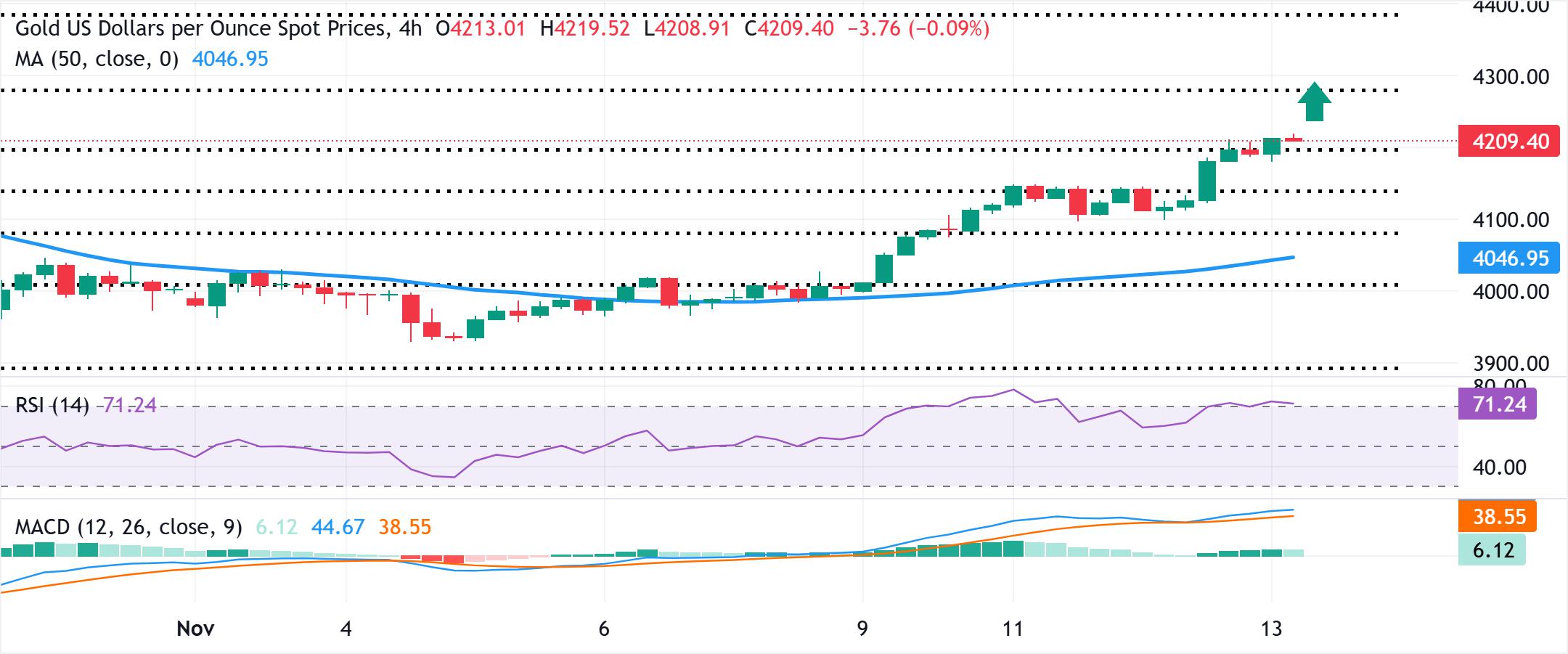 Emas menarik pembeli lanjutan pada hari Kamis di tengah latar belakang fundamental yang mendukung.Kekhawatiran ekonomi dan taruhan pemotongan suku bunga Fed melemahkan USD, menguntungkan logam mulia.Optimisme yang dipimpin oleh pembukaan kembali pemerintah AS dapat membatasi komoditas safe-haven. Em
