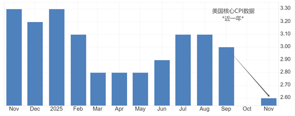ATFX:今日21:30,美国劳工统计局将公布12月CPI数据,该数据是美联储研判美国通胀走向的核心依据。10月份和11月份的CPI数据均受到美国政府停摆的影响,12月份是首个不受政府停摆影响的月份,更能揭示美国真实的物价表现。 12月名义CPI年率的前值为2.7%,预期值2.7%,预期持平。12月核心CPI年率的前值为2.6%,预期值2.7%,预期小幅增长。机构认为,名义CPI保持不变而核心CPI年率仅增加0.1个百分点,意味着美国12月份的物价水平基本保持稳定。 原油价格走势是影响CPI数据的重要因素。虽然核心CPI已经剔除食品和能源价格波动对数据的影响,但原油价格变化的间接影响仍然存在。