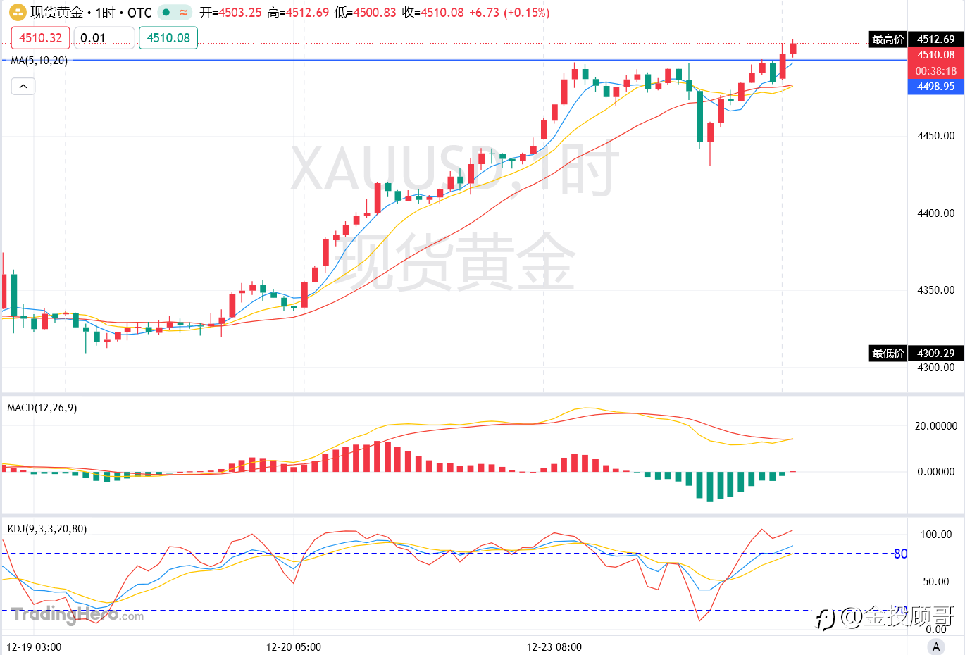 金投顾哥:12月24号早评黄金突破4500压力破位上行