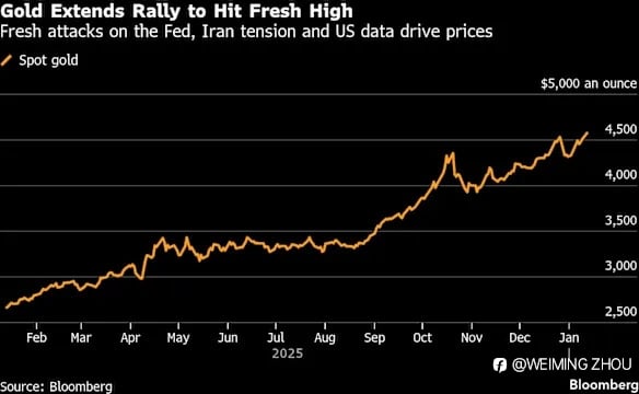 Bloomberg 彭博 金價創下歷史新高 聯儲會獨立性引發關切、伊朗局勢動盪
