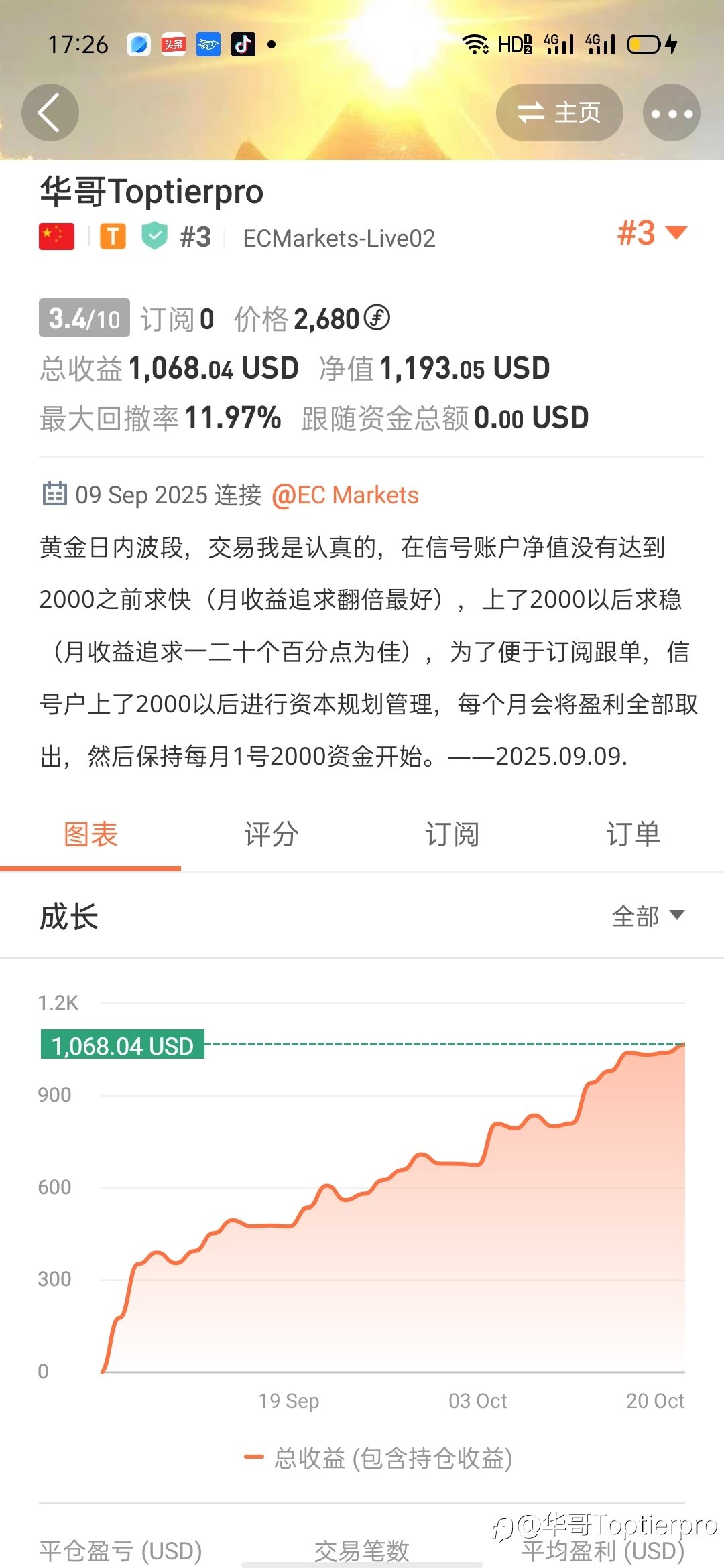 半年没逛社区了,我师傅(我尊称他为师傅,但是我自认为还不够资格,顶多算一个打杂的)他把交易比作爬、 走、 跑、飞四个阶段。如果把2023年比作爬的一年,2024年可以说是我交易开始走的一年,我不知道要走多少年才能学跑,但是在我没有学会走稳之前,不会尝试去跑,更不可能去飞。 回首2023年,师傅让我入金500美金,每单做0.01手,师傅监控我账户,并在手把手教的情况下,2023年从500美金做到了1000美金,虽然资金很少,但是我感觉窥探到了交易之门,星星之火可以燎原。到了2024年7月,师傅让我自己去做,在做交易前,花了三个时间做了黄金和帮日10年的统计,统计之后我就固化了我的交易系统。之所以