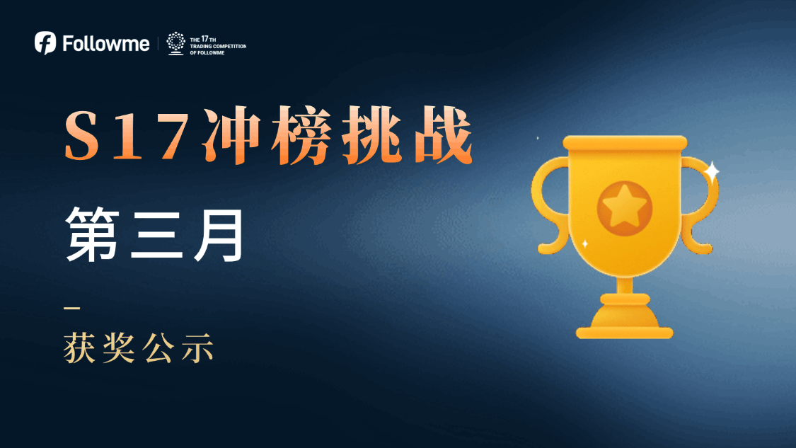 历时 105 天的激烈角逐,Followme 全球交易大赛第 17 赛季已于上上周正式落幕。感谢所有参赛者的专注与拼搏! 现公布第三个月【S17冲榜挑战】成功的交易者名单及对应奖励,恭喜以下用户脱颖而出! 社区昵称 冲榜战绩 奖励 鑫淼的世界 轻量组第19名+短评 50 points 超越金融培训 轻量组第3名+短评 50元京东卡 这个比赛怎么搞哇 轻量组第4名+长评 300元京东卡 神泣 轻量组第2名+长评 300元京东卡 何以解忧唯有赚钱 轻量组第1名+长评 300元京东卡 奖励将在7个工作日内陆续发放,请上榜选手注意查收。
