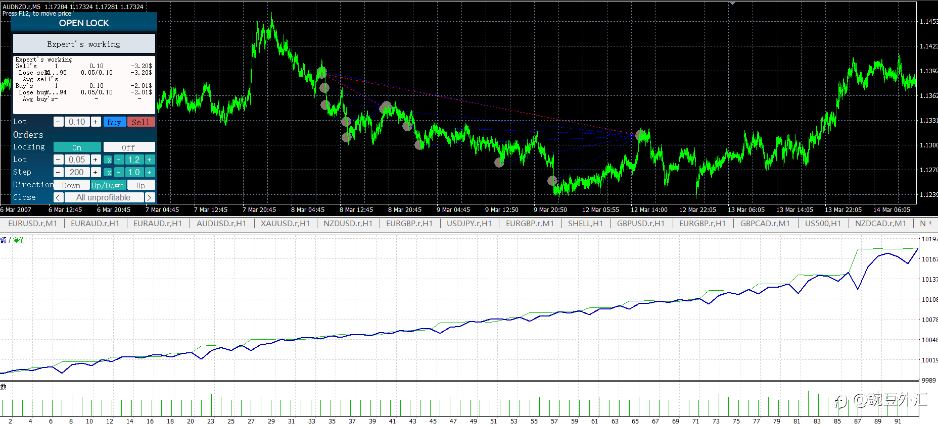 为了更好的增加客户体验度,现推出跟单优惠政策: 跟单3#账户,订阅1个月,赠送盈亏统计指标; 订阅3个月以上,赠送解套EA,著名的OPEN LOCK,人工马丁神器(5.9)版本,完全破解版,免环境,免MS32环境DLL,即装即用: 官网:在MetaTrader市场购买MetaTrader 4的'Open lock' 自动交易程序(EA交易) (mql5.com) 刚才试了下,还是很好用: 这是一款支持面板人工下单的多功能智能交易工具,可以人工或者EA下单后,用这个EA进行解套,对于EA和人工的专业交易者来说是不可多得甚至是必须要有的必备工具,原理是加仓或者锁单加仓,具体可以参照官网, 注意:投