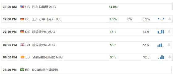 市场数据回顾 2021-09-03 12:30 PM 美国 - 非农就业数据 Aug 235K,目前数据大幅回落,属于利空。 TIPS:数据对于市有一定的参考作用,在不同市场环境中经济数据可能存在滞后性,但经济数据对于市场的影响一种是延伸趋势的发展和改变趋势的格局。需要综合考虑后制定交易策略。 今日重要数据 品种解析 美元指数: 美元指数天图:目前整体格局继续保持空头流向,并且短期价格已经坚决跌破水平支撑带92.333附近,上方又有下降趋势线的压制作用。从日内4小时级别,价格在破位后持续下行,短期不宜追空行情。可适当关注价格回测调整后再次走弱的空头机会,下方区间目标位置参考91.489附近。