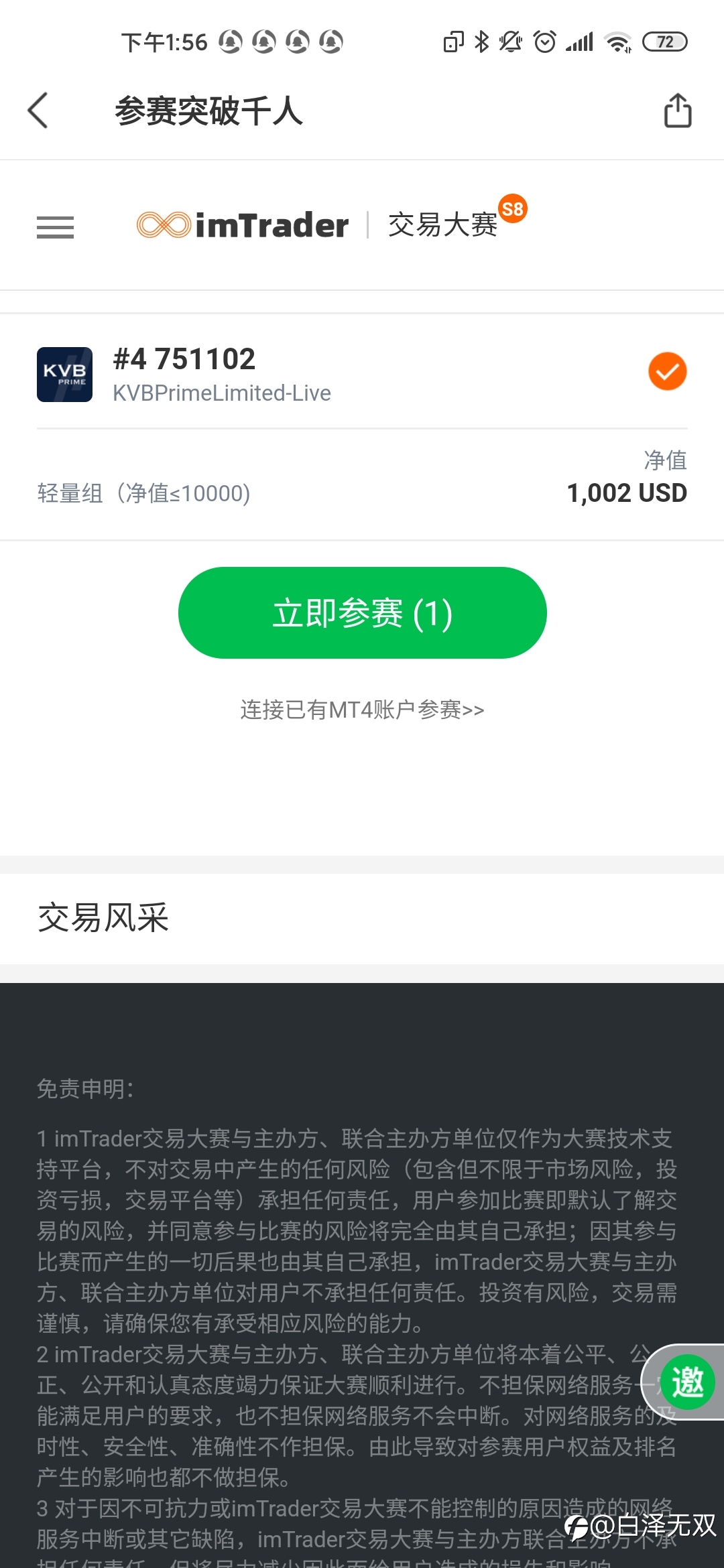 我来了,请大家关注我的#4交易员账户。穿越人海遇见你,交易从此不孤单。