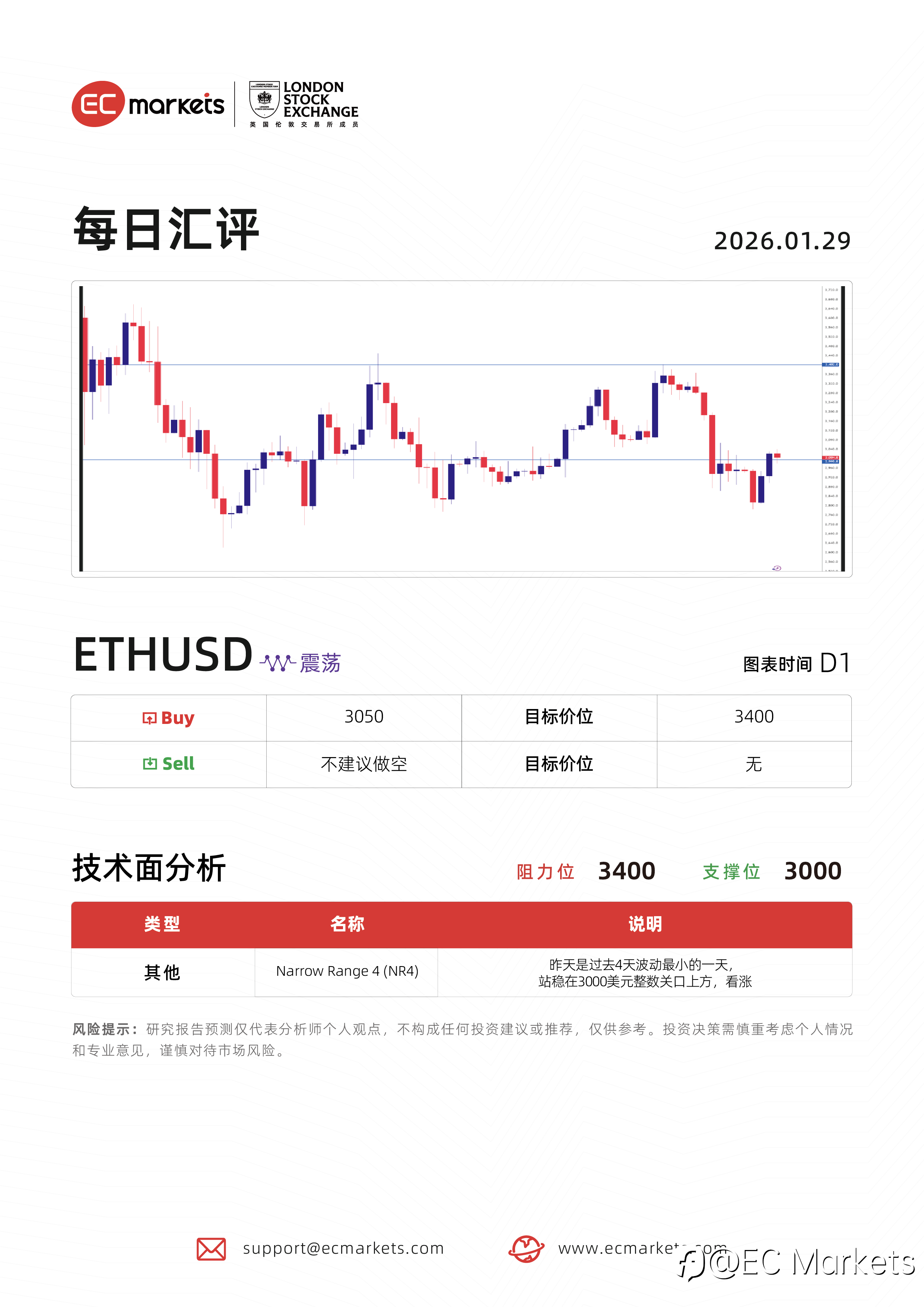 EC Markets 每日汇评 | 1月29日ETHUSD