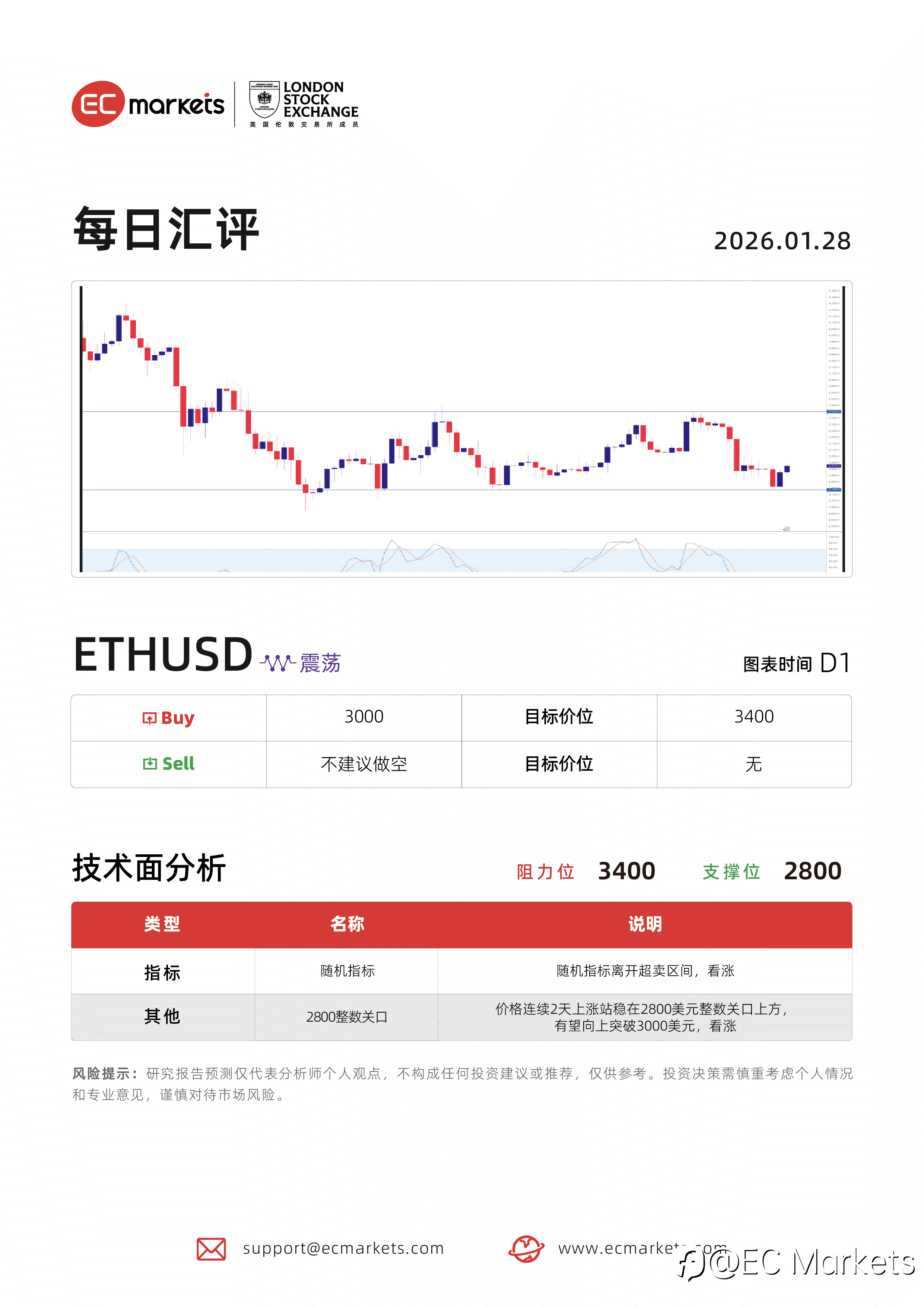 EC Markets 每日汇评 | 1月28日ETHUSD